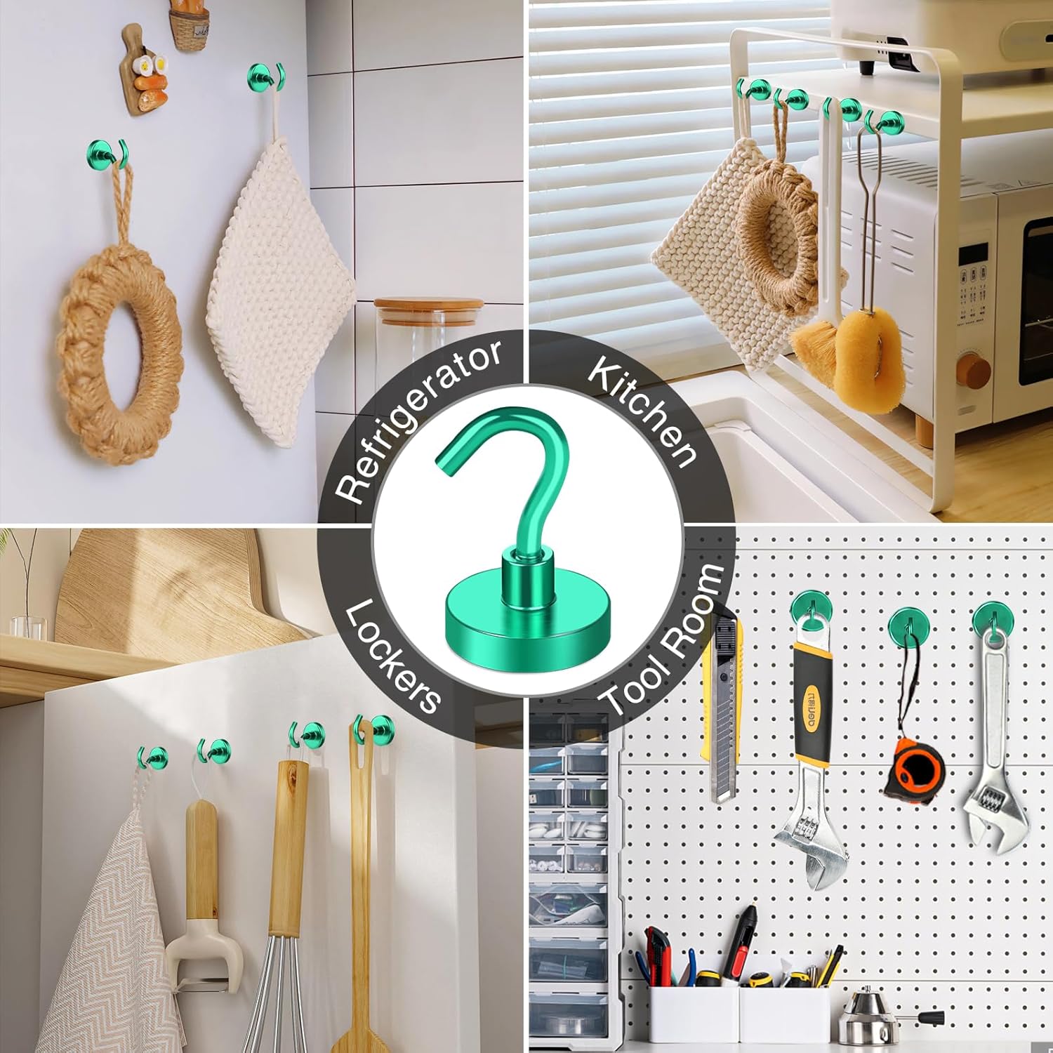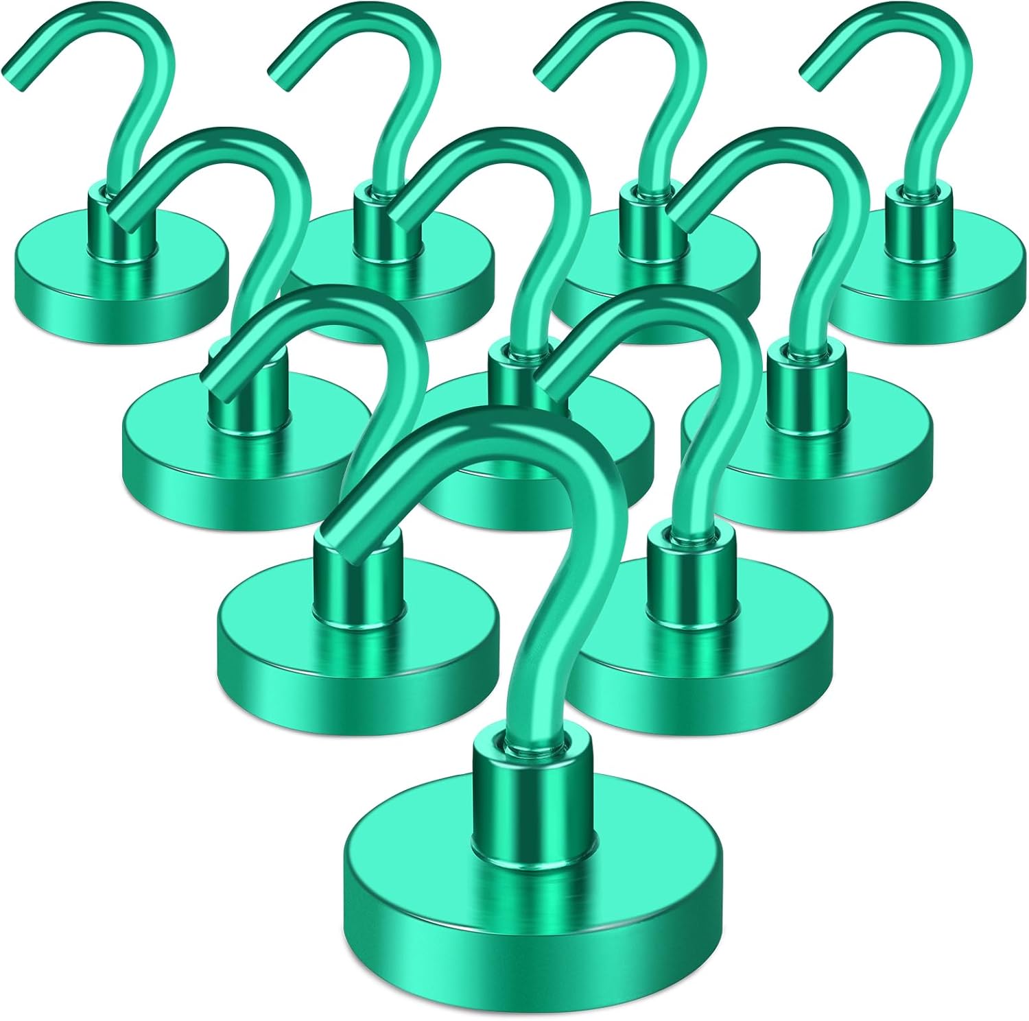 MIKEDE Magnetic Hooks, 40Lbs+ Heavy Duty Magnet Hooks for Cruise Cabins, Super Neodymium Hanging Hooks Strong Magnets with Hook for Fridge, Magnetic Hanger for Grill, Toolbox, Storage(Green, 10 Pack)