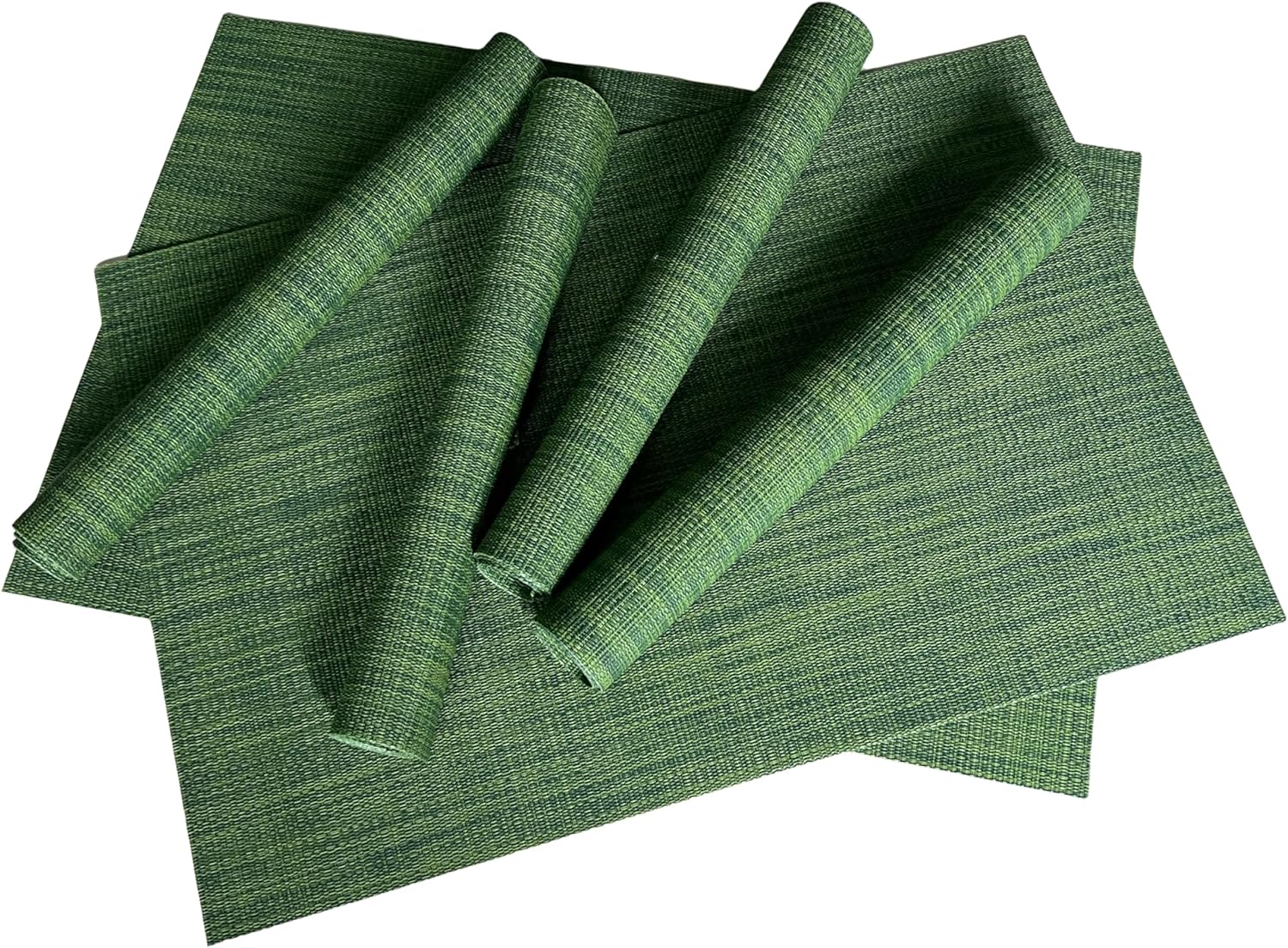 WAZAIGUR Placemats Set of 6 for Dining Table Heat-Resistant Washable Place Mats Woven Vinyl Kitchen Table Mats Easy to Clean,Hunter Green