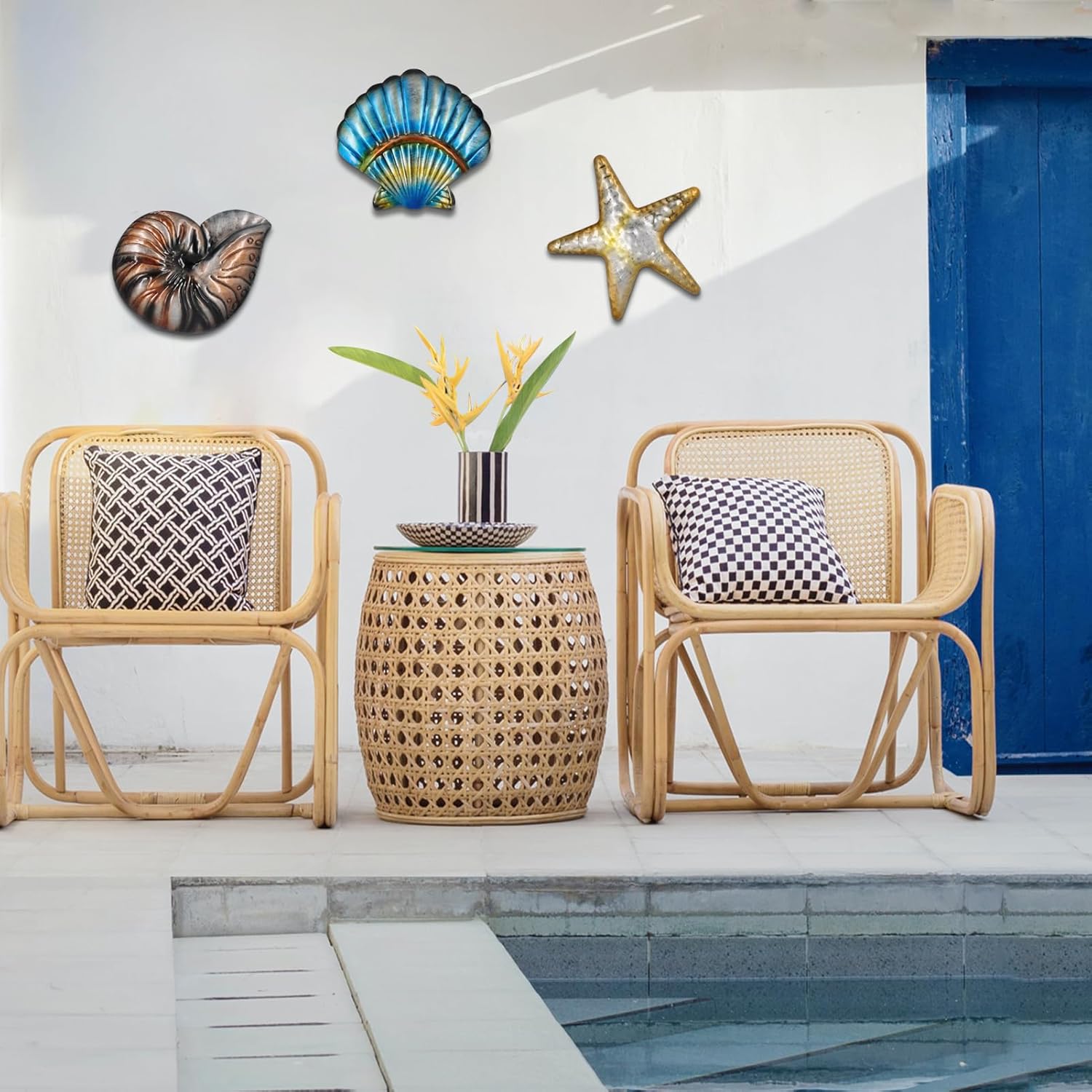 Metal Ocean Wall Sculptures Outdoor Metal Sea Star Conch Wall Art Decor Pool Garden Patio Bathroom Yard Farmhouse Fence Deck