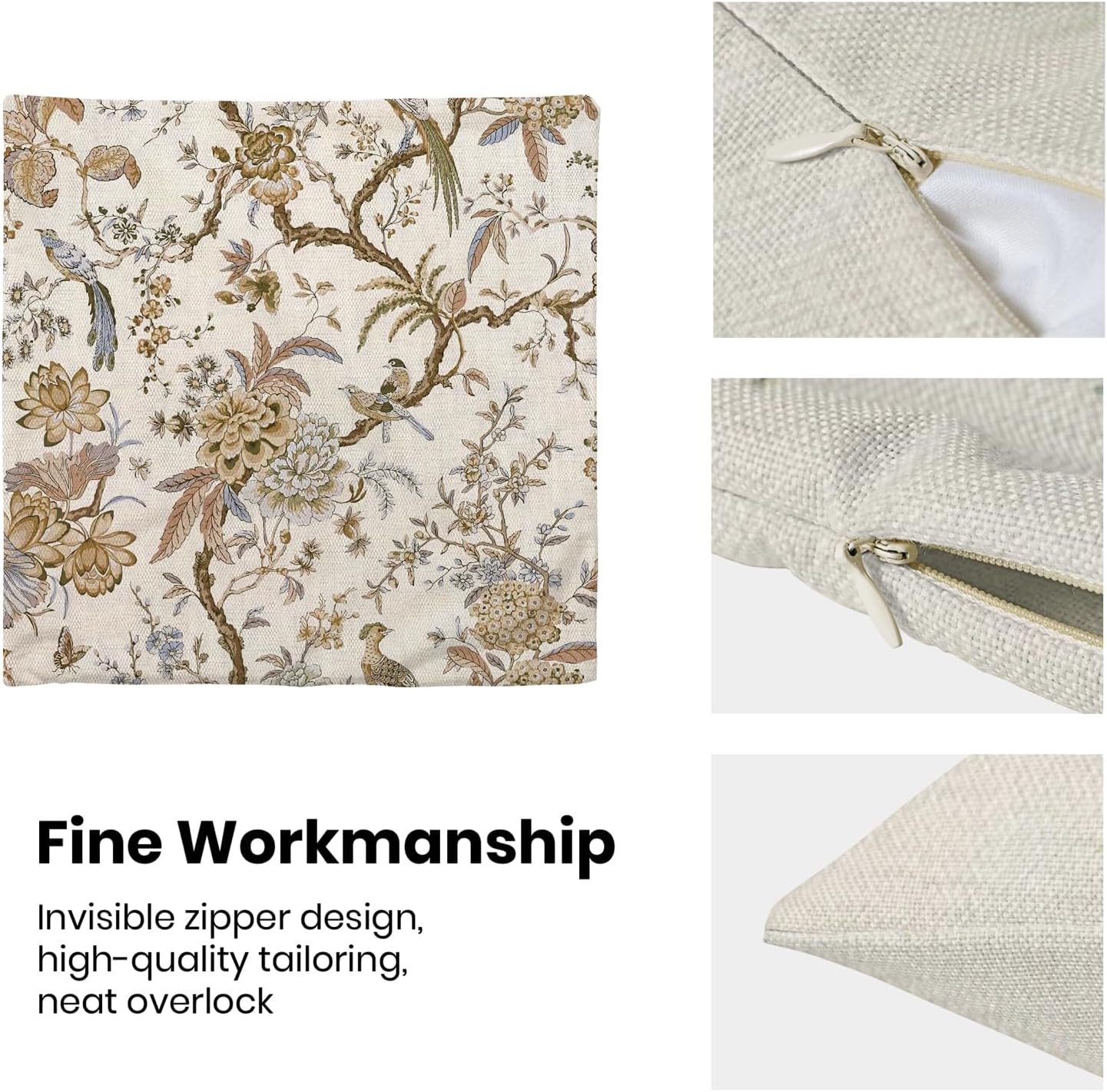 - 【Square Pillow Covers Size】 Chinoiserie flower birds pillow case set includes 2 pcs of farmhouse couch pillow covers (NO Pillow). Home decor farmhouse pillow covers measures 16x16 inch/ 40x40 cm. All the dragonfly floral decor throw pillow covers have a hidden zipper. It is easy to insert or remove the pillow core to replace the spring pillowcase. Easy to clean and wash, durable and not easy to damage.