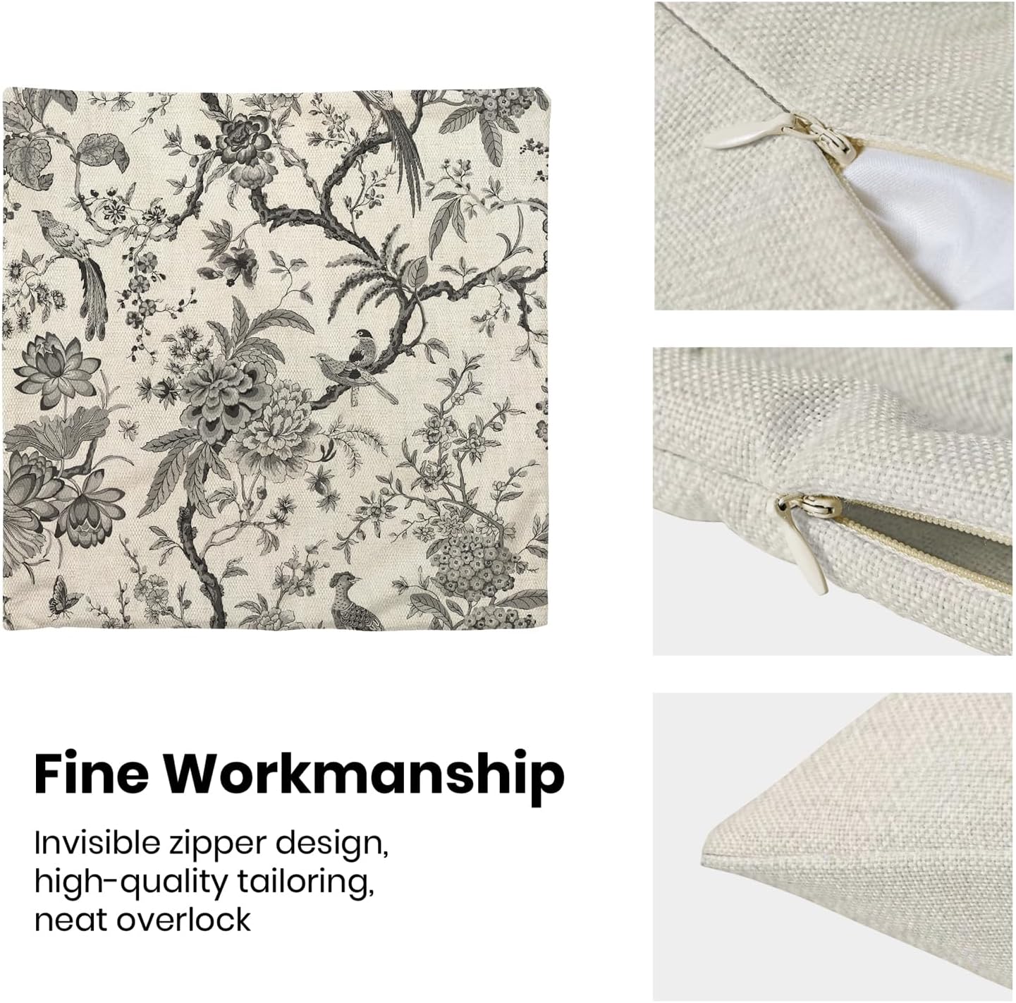 - 【Spring Pillow Covers】 Our Chinoiserie floral throw pillow covers 16x16 inch are made of excellent breathable polyester cotton fabric. The black and white floral decorative pillow covers is durable, soft and skin-friendly. The plant outdoor pillow covers adopt exquisite edging technology and four sides of our floral pillow covers are sewn firmly, which is not easy to open the line.