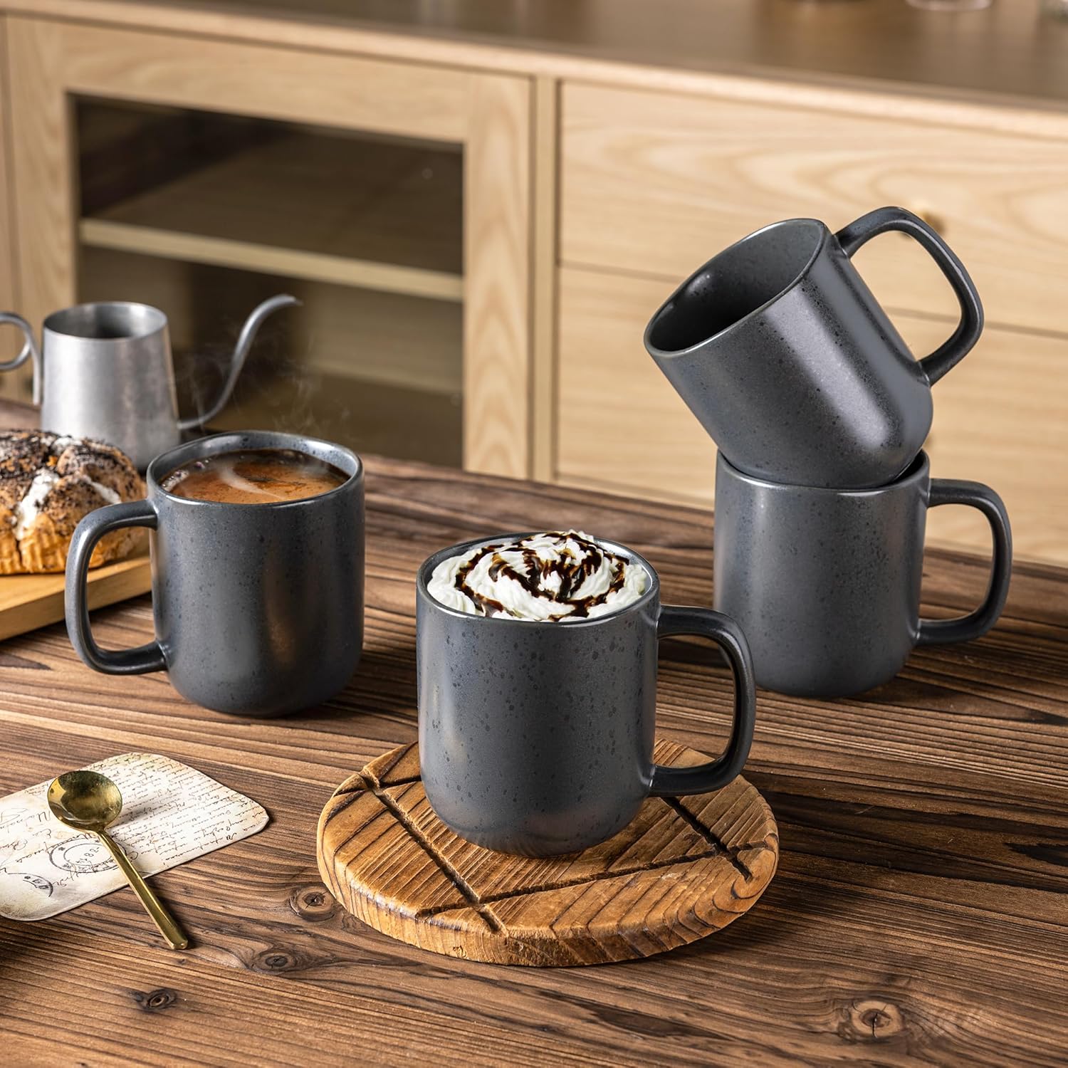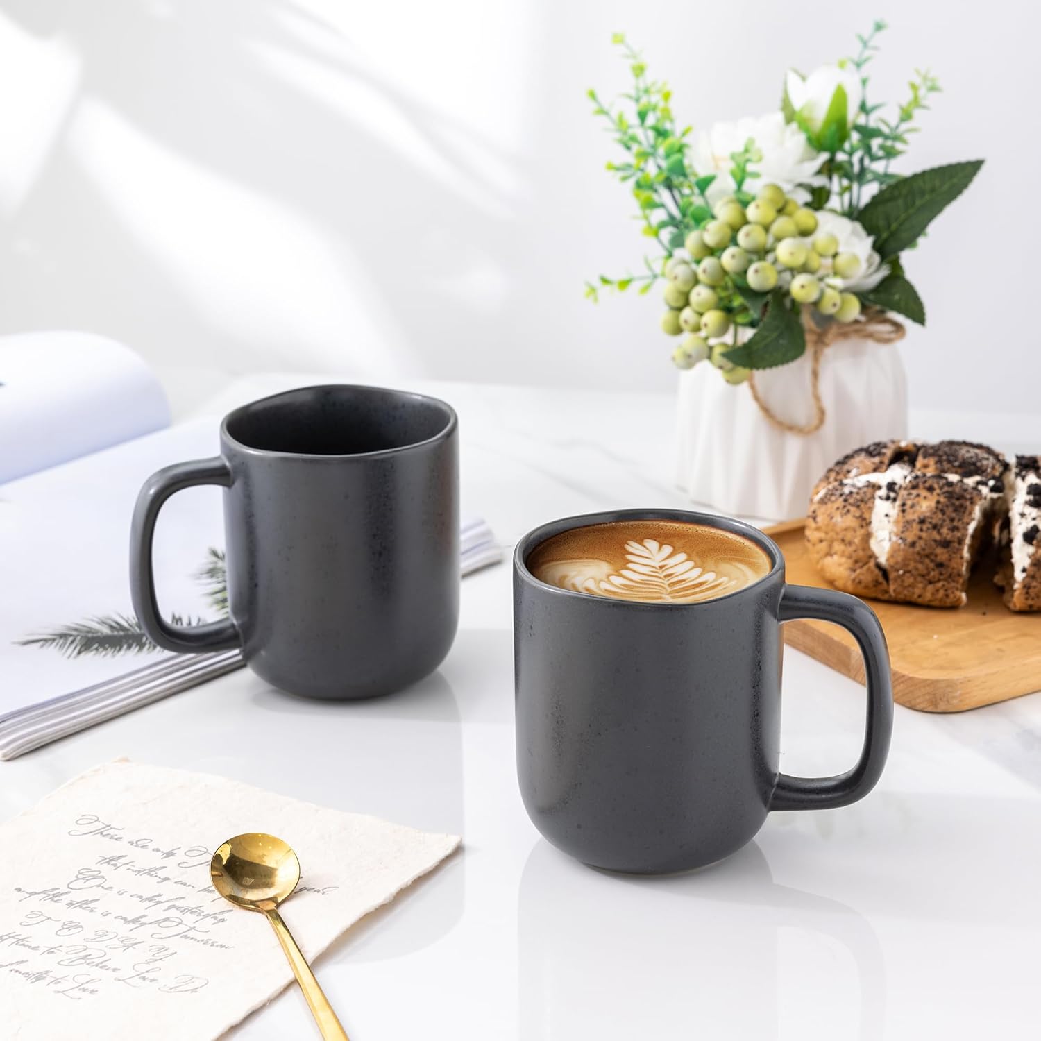 AmorArc 14oz Coffee Mugs Set of 6, Ceramic Coffee Mugs with Large Handle & Wavy Rim for Latte/Hot Cocoa/Tea, Stylish Coffee Cups for Men Women. Oven,Dishwasher&Microwave Safe, Dark Gray