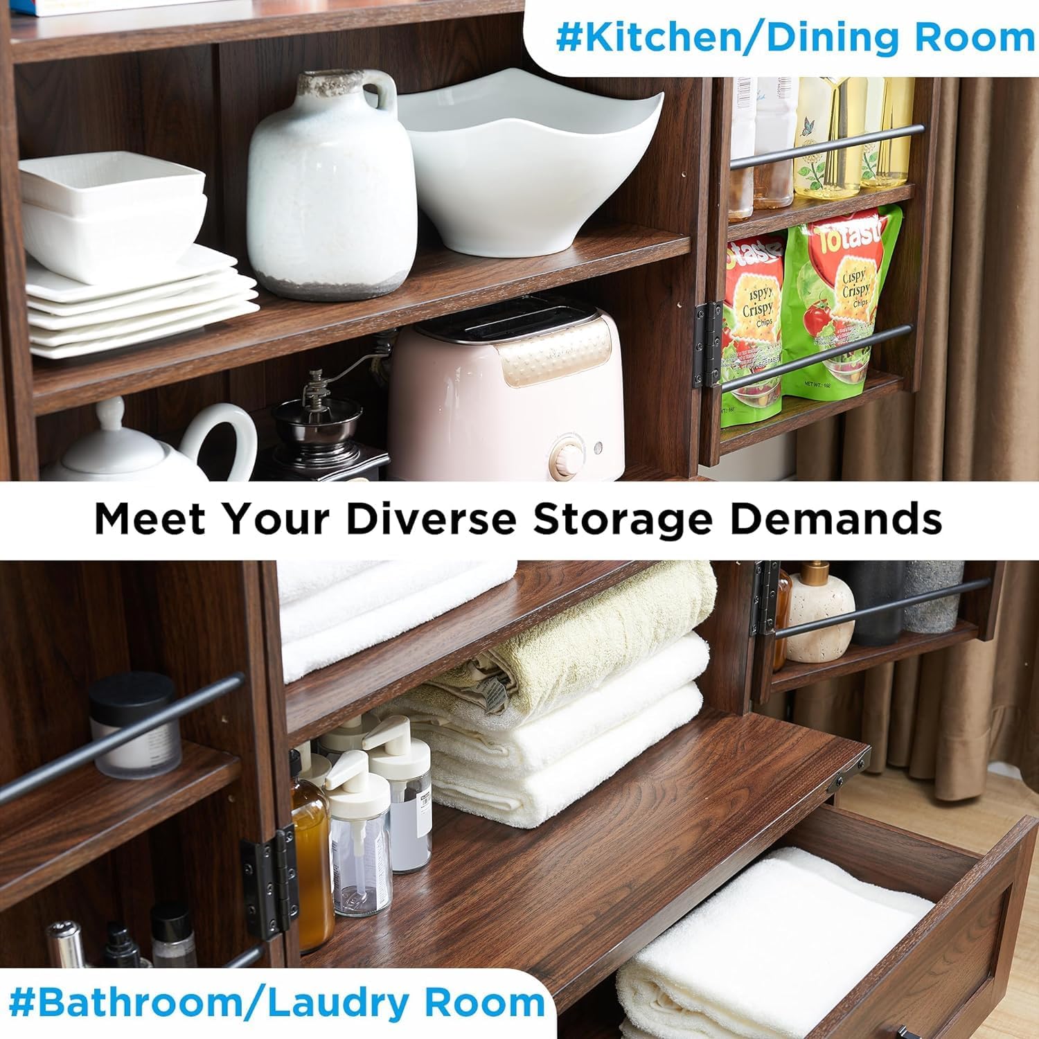 - YOUR SPACE SOLUTION W/ACCOHOHO CABINET: Unleash the potential of your space with our upgraded farmhouse storage cabinet, Overall size:30"W × 15.5" D × 72" H. Tailor your storage needs with 5 shelves (2 adjustable), 12 door shelves (2 adjustable), and a smooth-gliding lower drawer for versatile uses