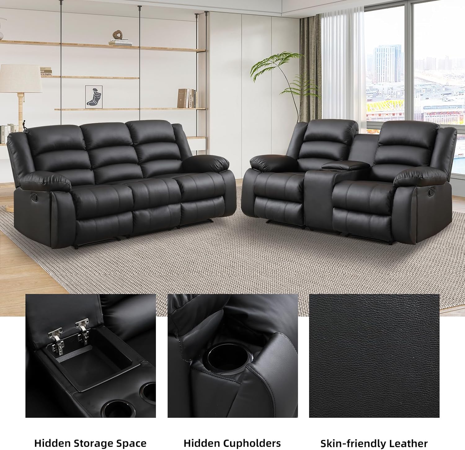 - 【Hidden Storage Compartment】: The loveseat recliner includes a hidden storage compartment in the center console. This compartment provides discreet storage space for small items such as remote controls, magazines, or other essentials, helping to keep your living area organized and clutter-free.