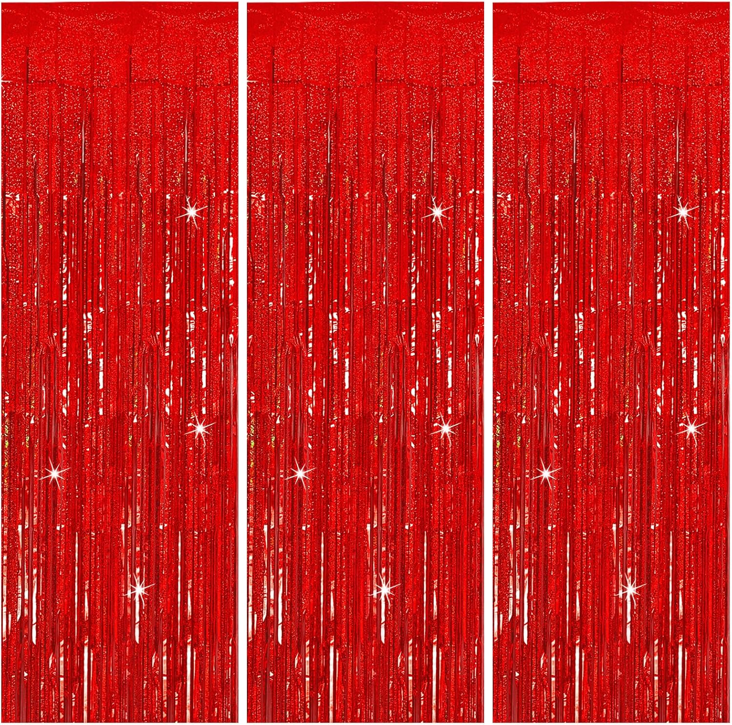 3 Pack Red Streamers Party Backdrop Christmas Decorations Foil Fringe Backdrop Curtains Carnival Casino Theme Birthday New Year Holiday Celebration Bachelorette Party Decorations Supplies