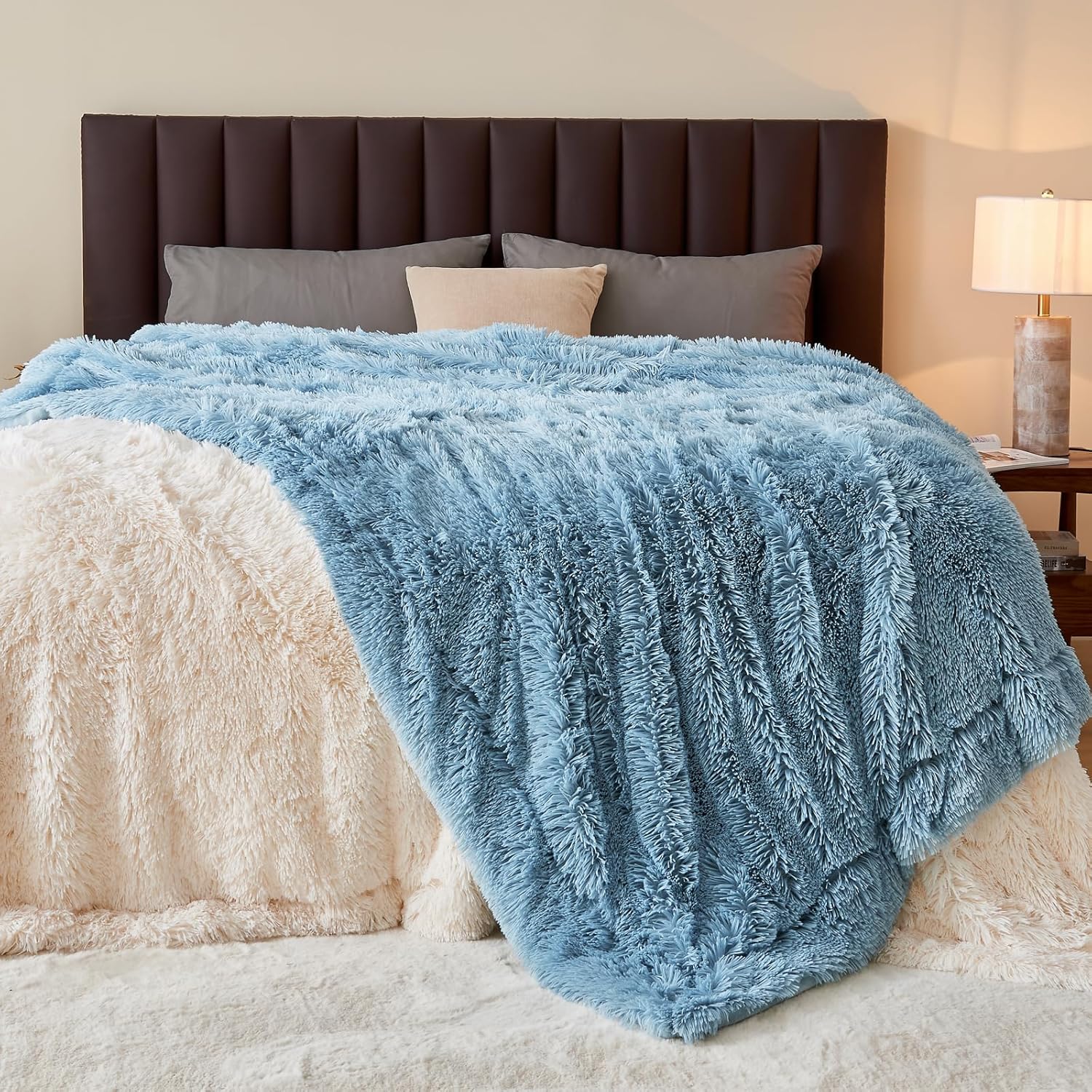 GONAAP Fuzzy Faux Fur Throw Blanket Light Blue Super Soft Cozy Plush Fuzzy Shaggy Blanket for Couch Sofa Bed (Light Blue, Throw(50"x60"))