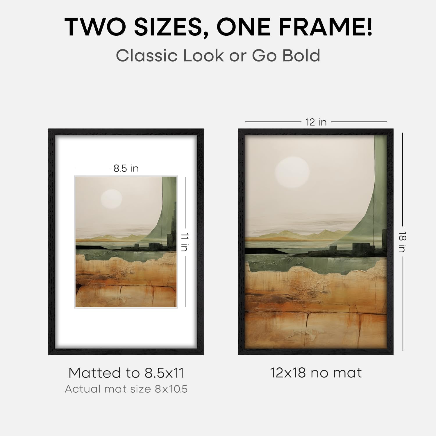 Homeforia 12x18 Frame Black Wood, High End Oak 12x18 Picture Frames with Mat 8.5x11 Photo, 12 x 18 Wooden Poster Frame Matted to 8.5 x 11 Print, 18x12 Hanging Frame, Tempered Glass, Wall Kit, Set of 1