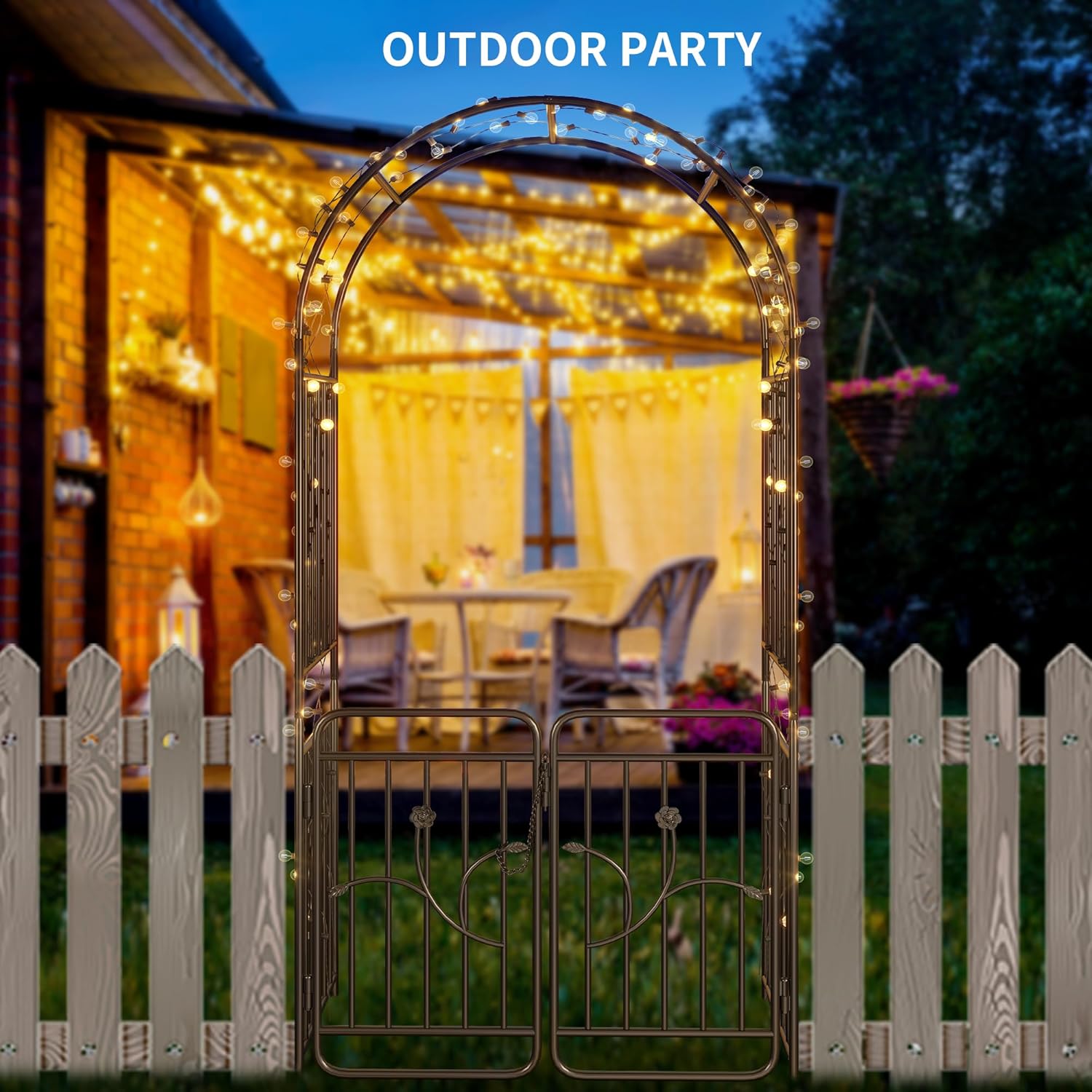 - Garden Archway with Gate: Experience the elegance of our garden arbor, designed to elevate your patio, backyard, or courtyard. With its double gate, accessing your outdoor space is effortless as it can be easily opened and closed.