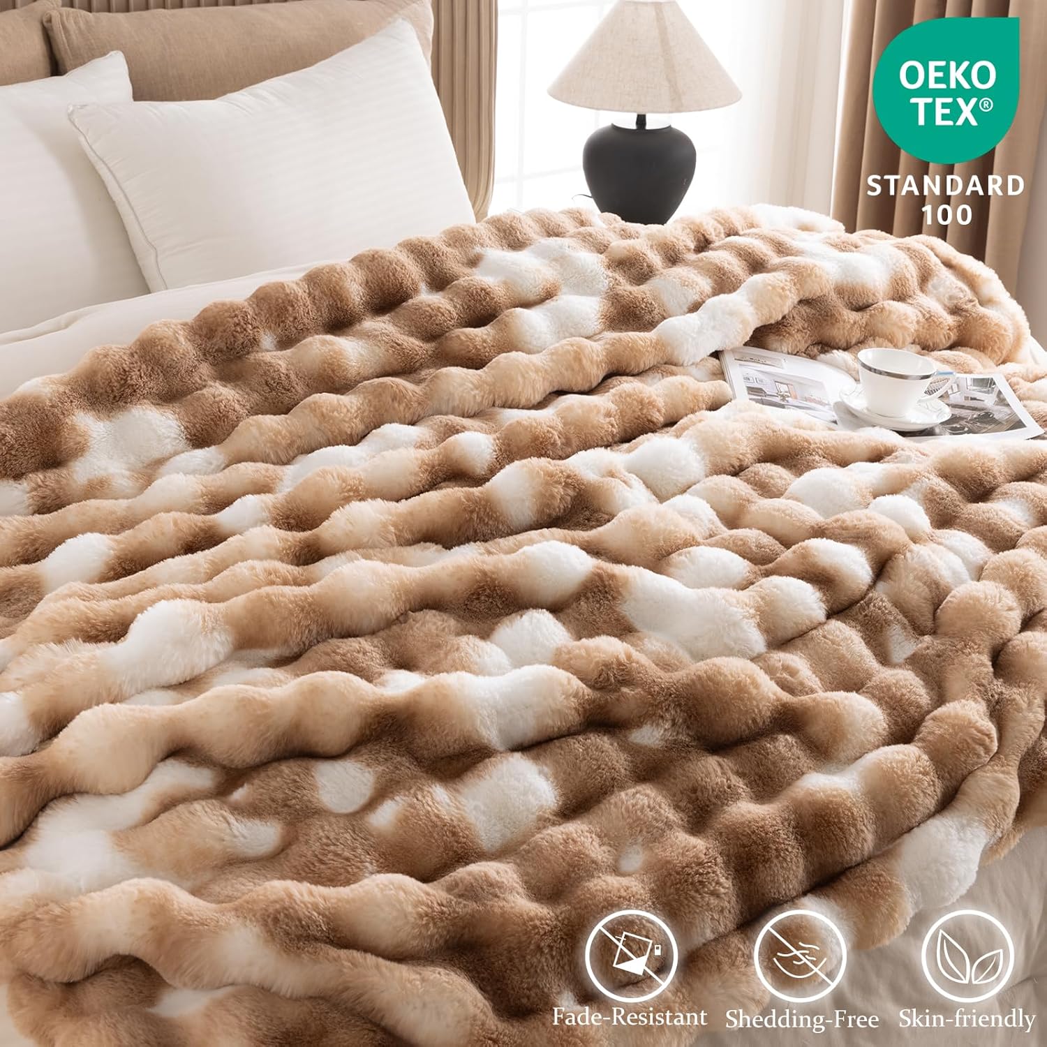 - Ultra-Soft Dual-Layer Comfort: Experience cloud-like softness with our bubble faux fur throw blanket, Combining a fluffy faux fur exterior with an ultra-soft microfleece interior, this blanket delivers a truly luxurious tactile experience. Designed for year-round comfort offers breathable warmth and sumptuous coziness in every season