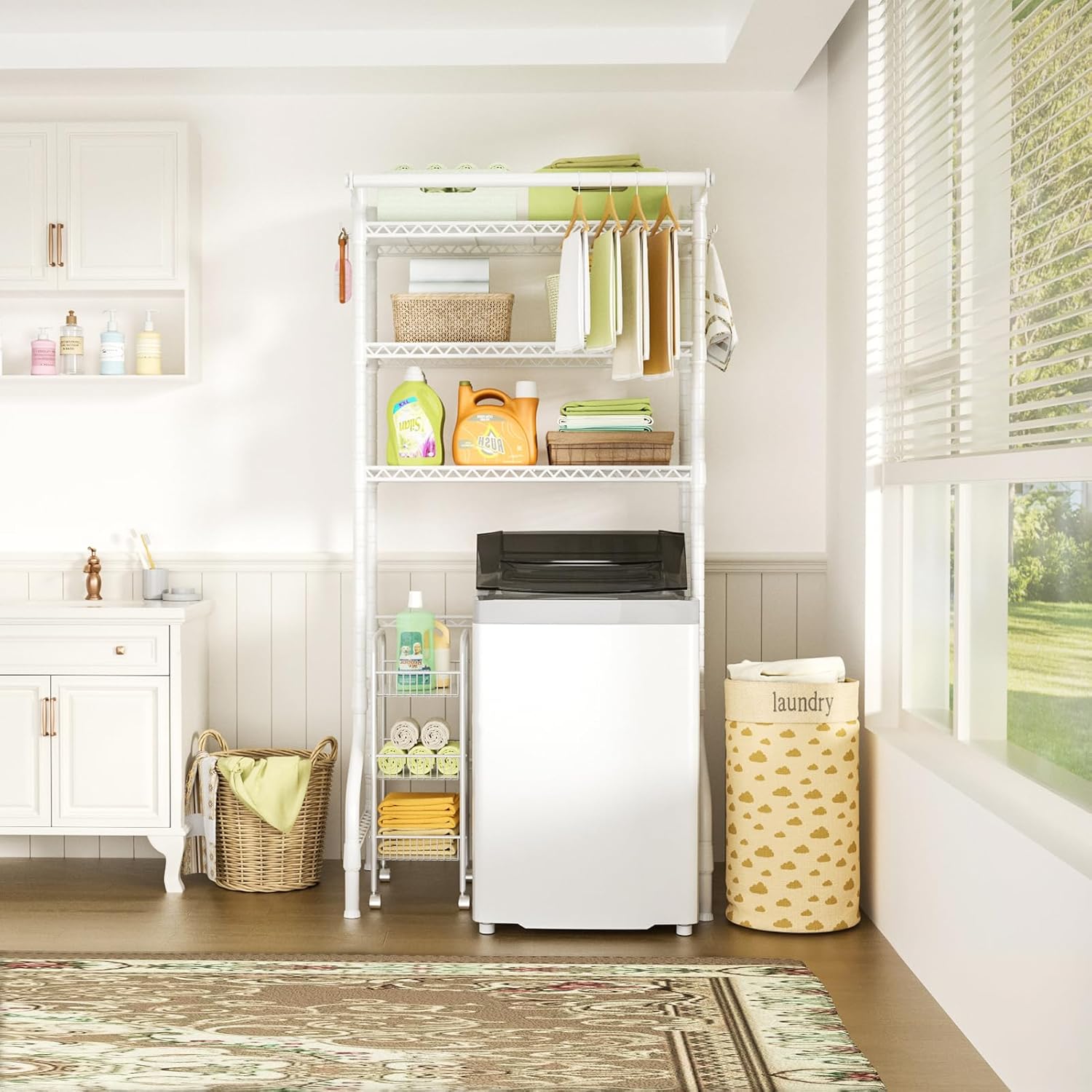 Ulif U11 Over Washer and Dryer Shelves, 3 Tiers Laundry Room Storage and Organizer Standing Shelf, Metal Freestanding Clothes Drying Rack, 33.9" W x 19.7" D x 77.6" H, White