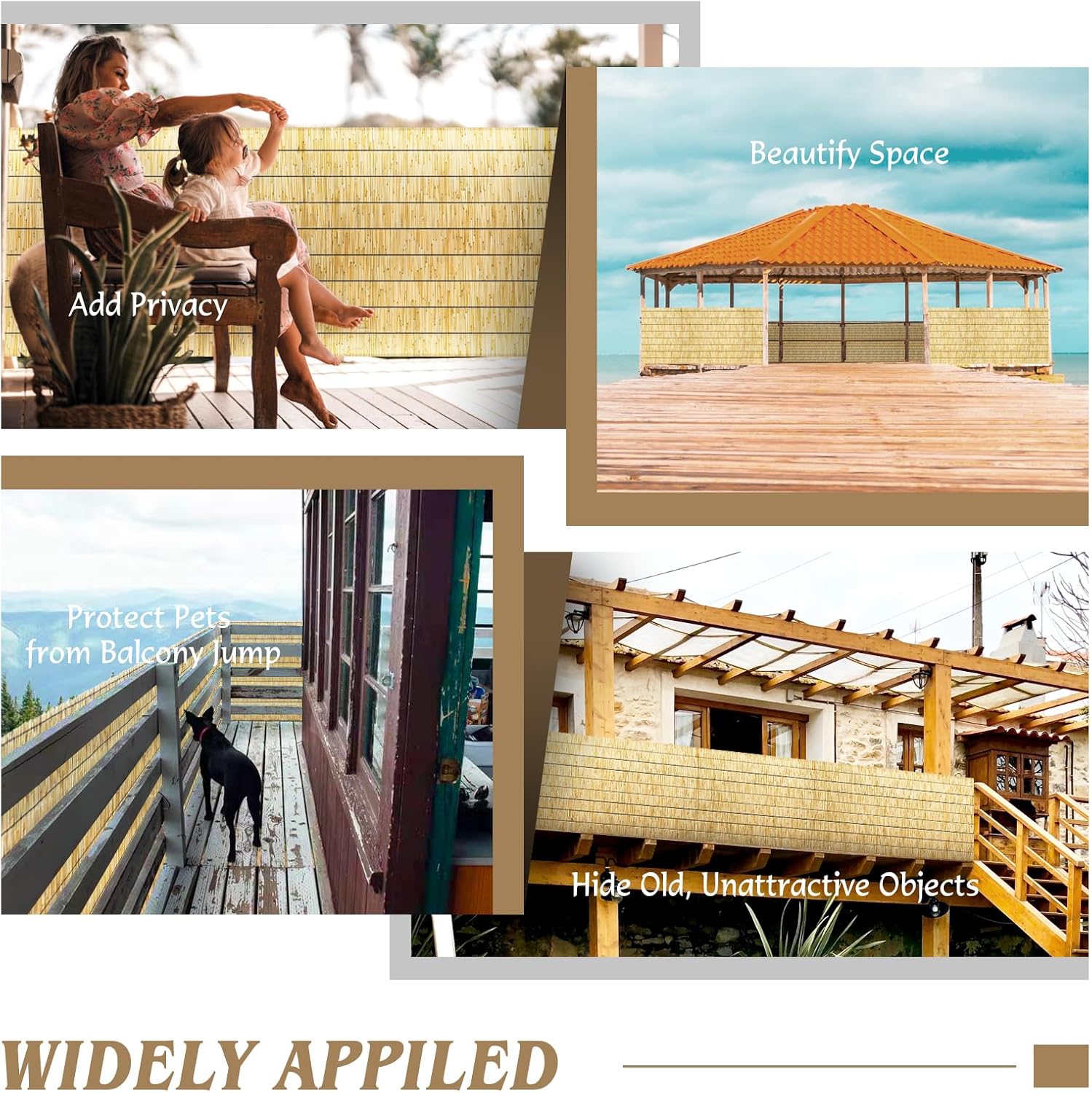 - 【1-PACK MULTI-FUNCTIONAL REED FENCING】- This set has 1 pack reed. Use them to hide unattractive objects or old fence, add more privacy, provide shade to your balcony/patio, stop pets from jumping from balcony, adorn swimming pool, giving a rustic and natural look to your space