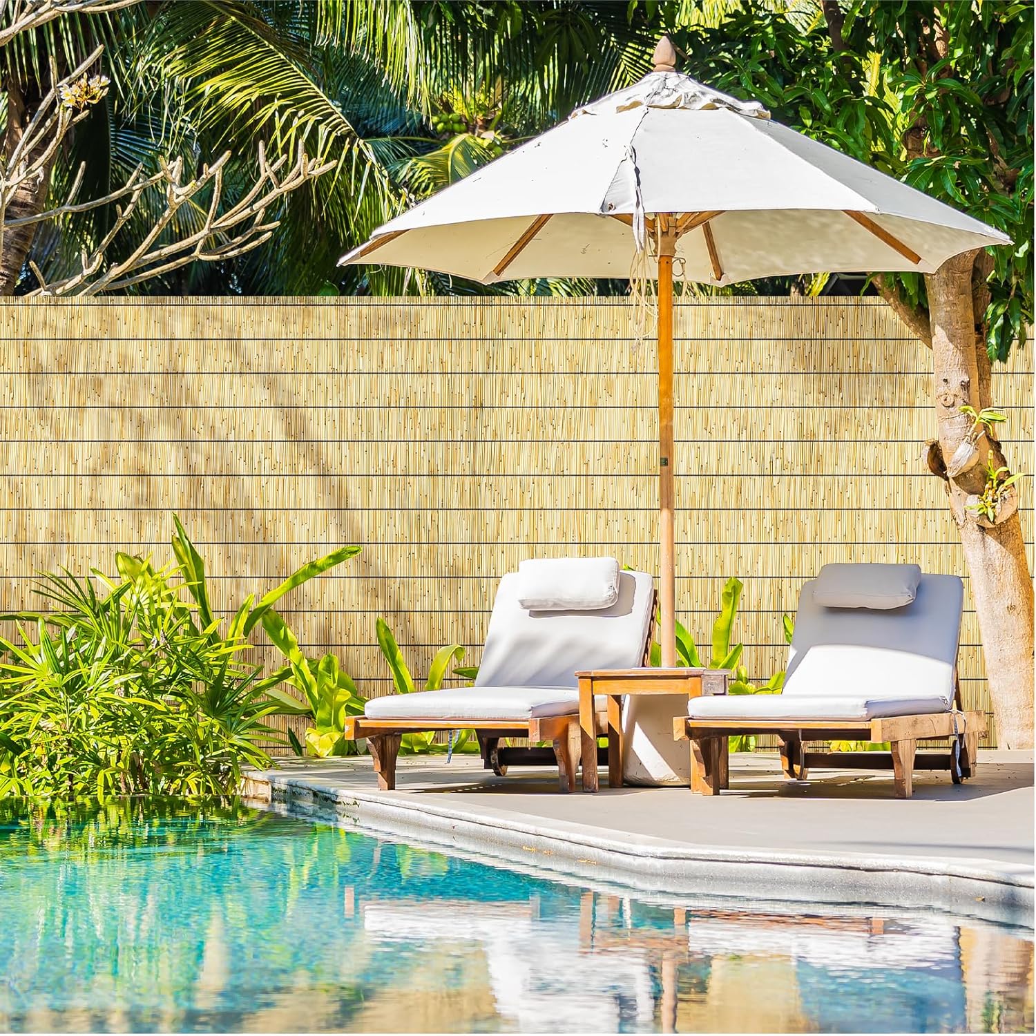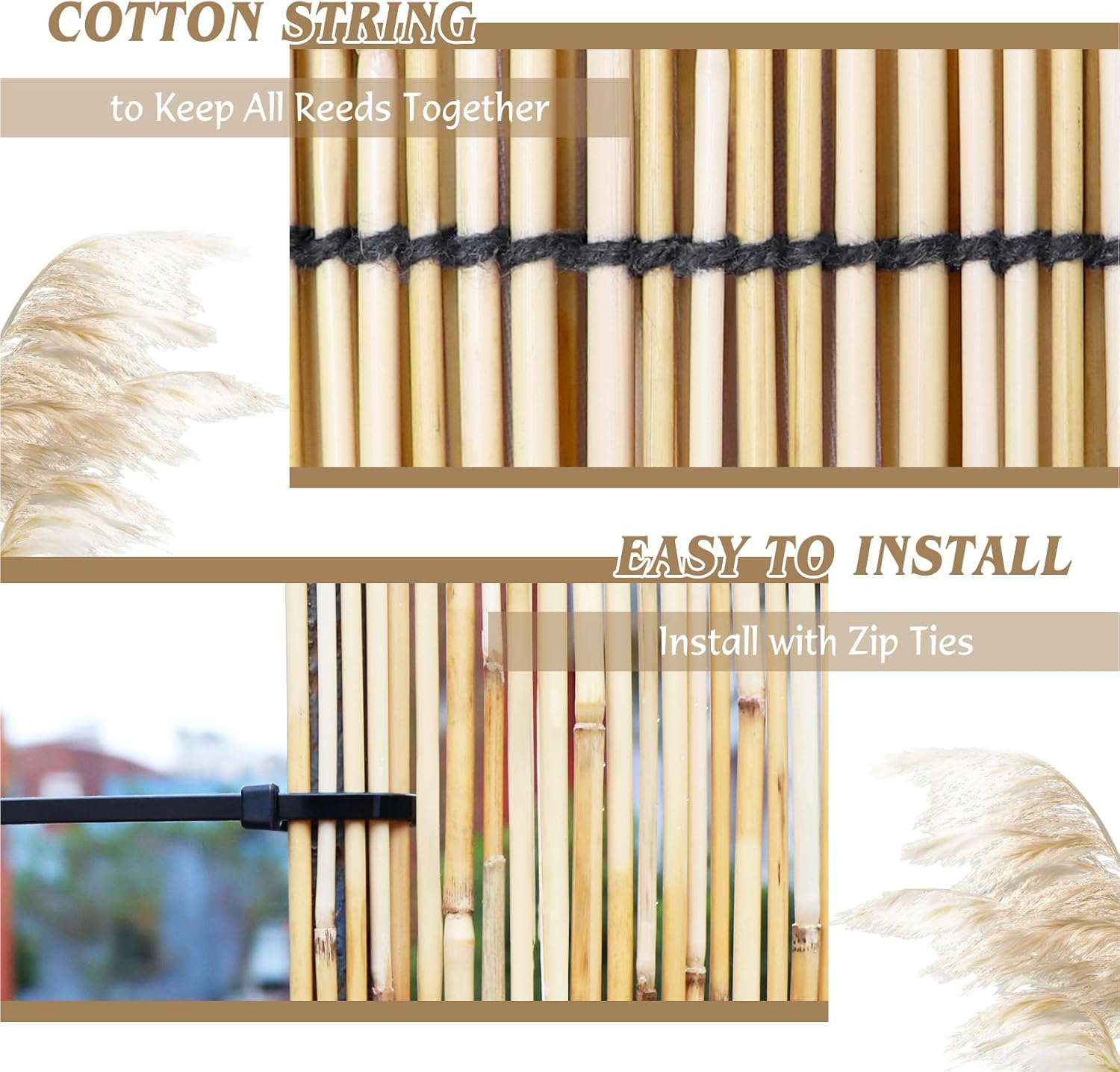 - 【FRIENDLY NOTES】- Please note: As these fences are natural-reed- made, the color, width or length of screen roll will slightly vary.Reed screen curtain might be slight burs or spots on the surface of natural reed, please install with care.