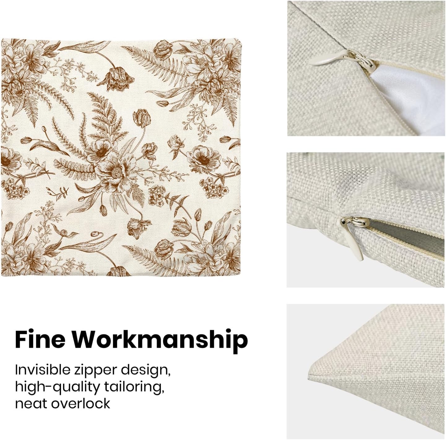 - 【Spring Pillow Covers】 Our Chinoiserie floral throw pillow covers 16x16 inch are made of excellent breathable polyester cotton fabric. The Brown and White floral decorative pillow covers is sturdy, soft and skin-friendly. The plant outdoor pillow covers adopt exquisite edging technology and four sides of our floral pillow covers are sewn firmly, which is not easy to open the line.