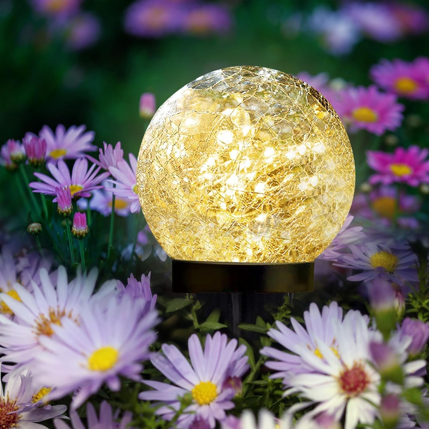 - 【Unique Crackle Design & Ideal Present】Solar garden light crackle effect is clear and realistic, using solar technology and environmentally friendly and energy saving warm white LED light, unique thick crackle glass ball design creates a warm and romantic atmosphere. Ideal gift for outdoor party, can be used as moon light garden decoration