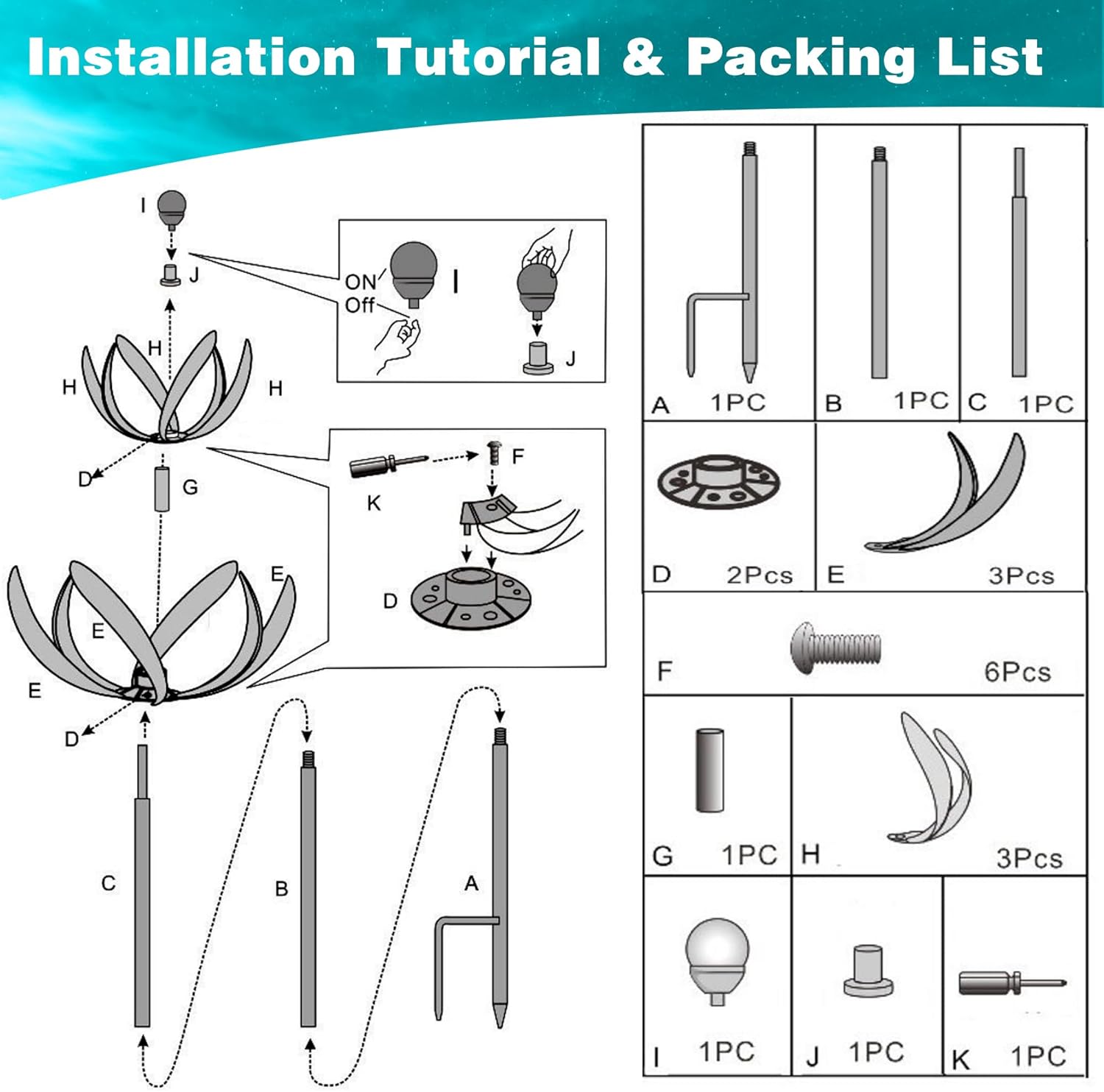 - Easy to Install: Large wind spinner is very easy to install, just twist all the accessories to install. The metal pole, the angle of the petals can be adjusted, you can also adjust the length of the pole and the degree of bloom of the flowers.