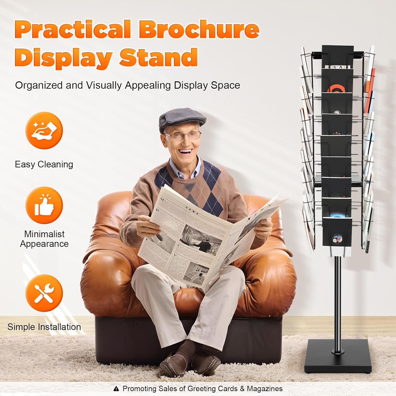 - πΉππππππππ & πΆπππ π«πππππ: The magazine storage rack floor fully open design and 360-degree rotation provide dynamic demonstrations and wide accessibility, enhancing visibility from all angles, and making it easier for customers to access brochures, and achieve efficient viewing
