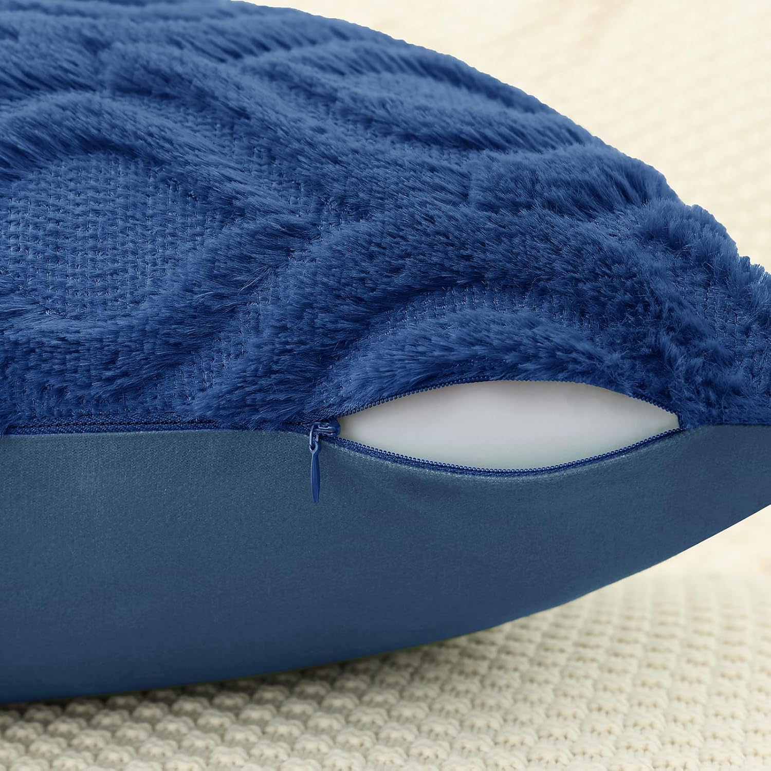 decorUhome Fall Throw Pillow Covers 20x20 Inch Set of 2, Soft Plush Decorative Faux Fur Dark Blue Solid Couch Pillow Covers, Accent Farmhouse Neutral Square Euro Pillow Cases for Sofa Bed Living Room