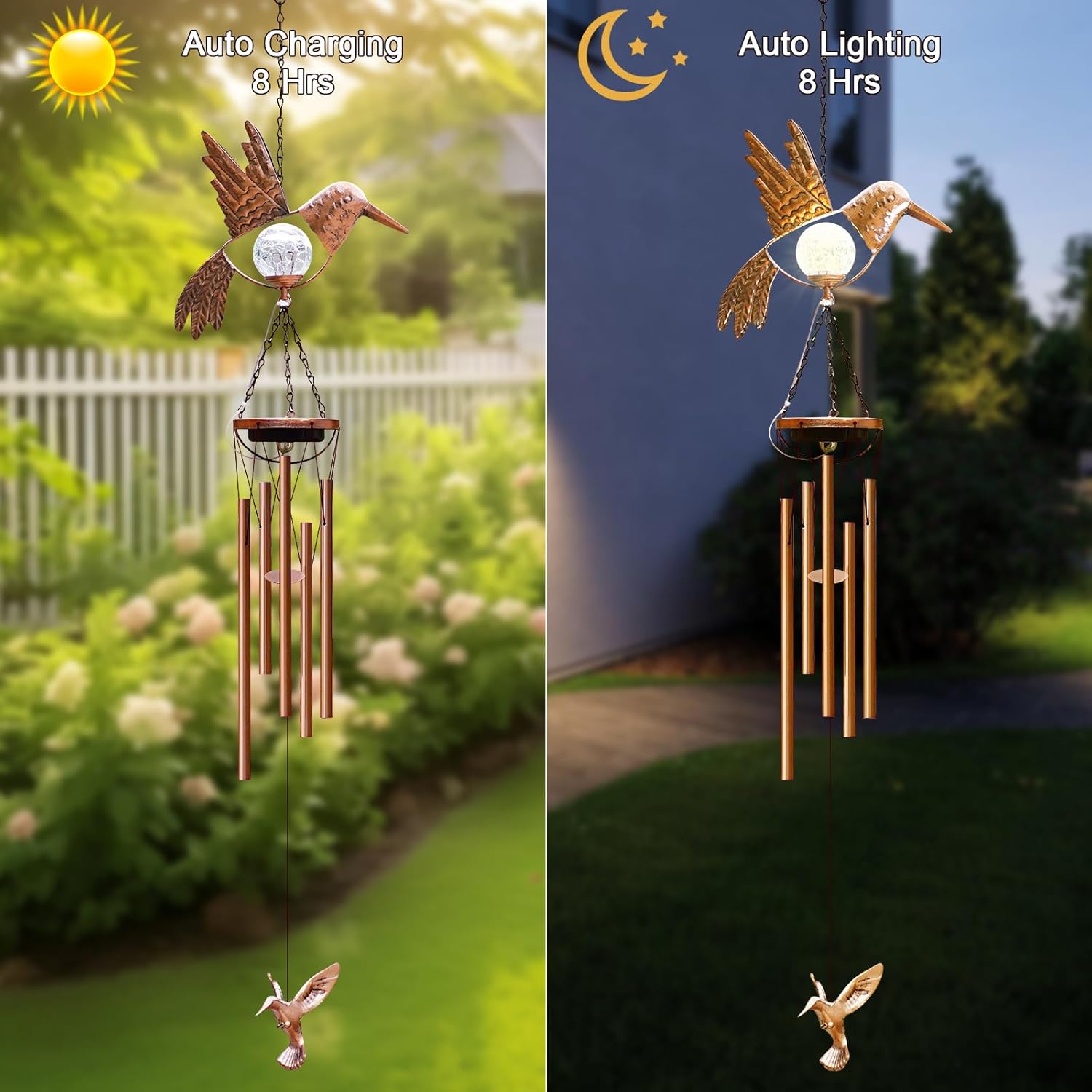 Wind Chimes Outdoor Indoor Decor: Birthday Gifts for Mom Grandma - Outside Lights for Garden Yard Patio Porch (Hummingbird)