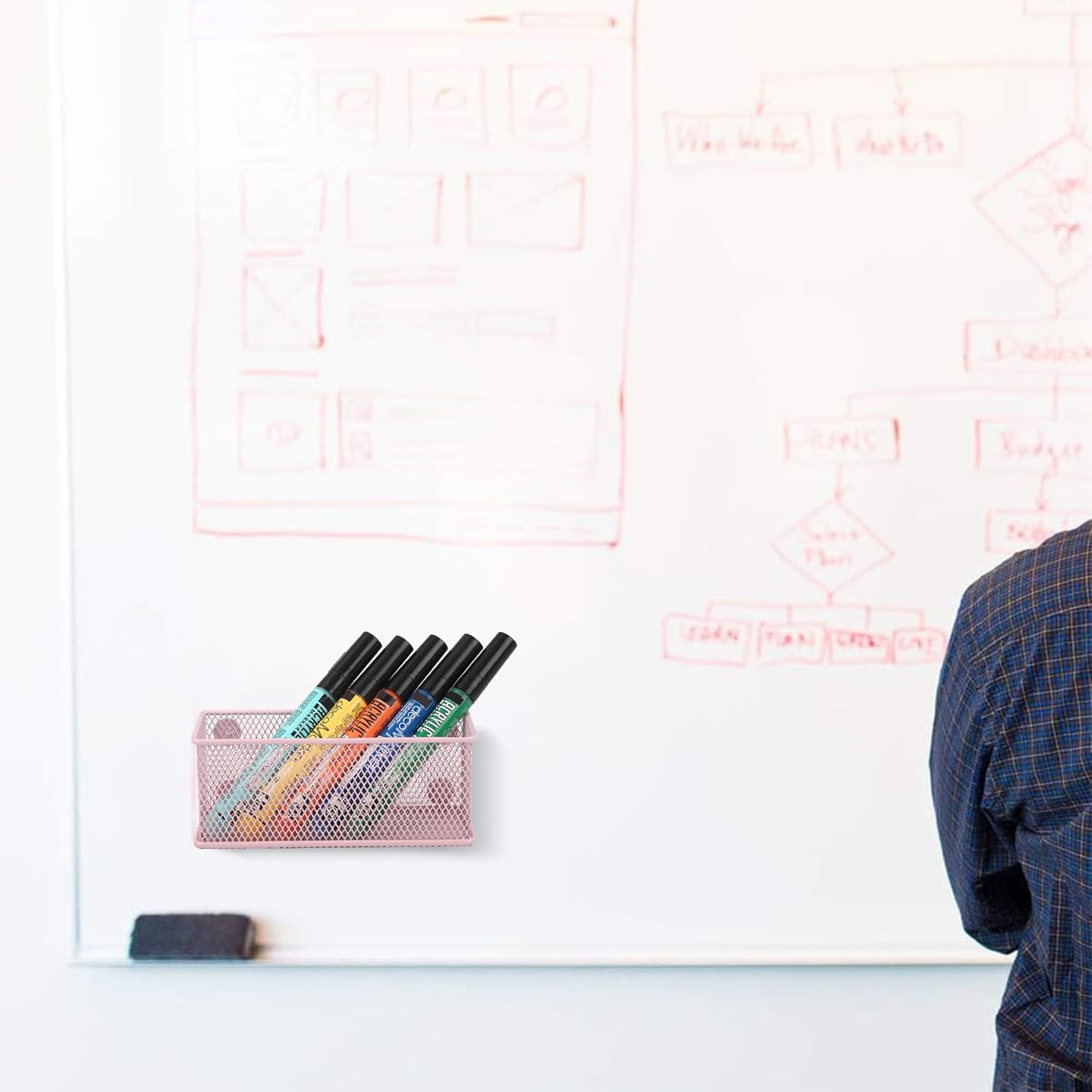 EASEPRES Magnetic Pencil Holder Set of 6 - Wire Mesh Storage Baskets Organizer with Strong Magnets - Perfect for Whiteboard, Refrigerator and Locker Accessories, Pink