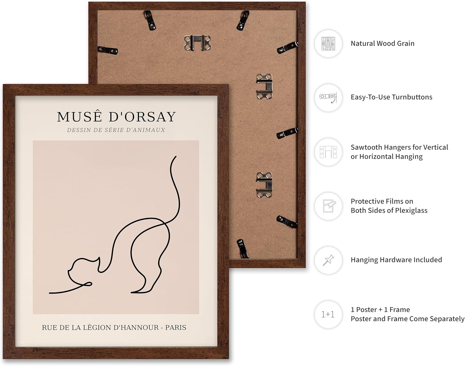 Poster Master Vintage Poster - Retro One Line Cat Drawing Print - Cat Art - Minimal Gift for Men, Women, Animal Lover - Abstract Wall Decor for Home, Office, Bedroom, 16x20 Brown Framed