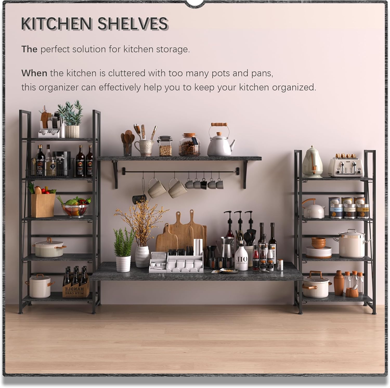 - 【Simplicity and practical folding bookshelf】it is a industrial style design with simplicity and retro, which can not only make your room in good order, but also occupy few space. You can put it in any space of your home, such as living room, bedroom, corridor, kitchen, balcony, etc