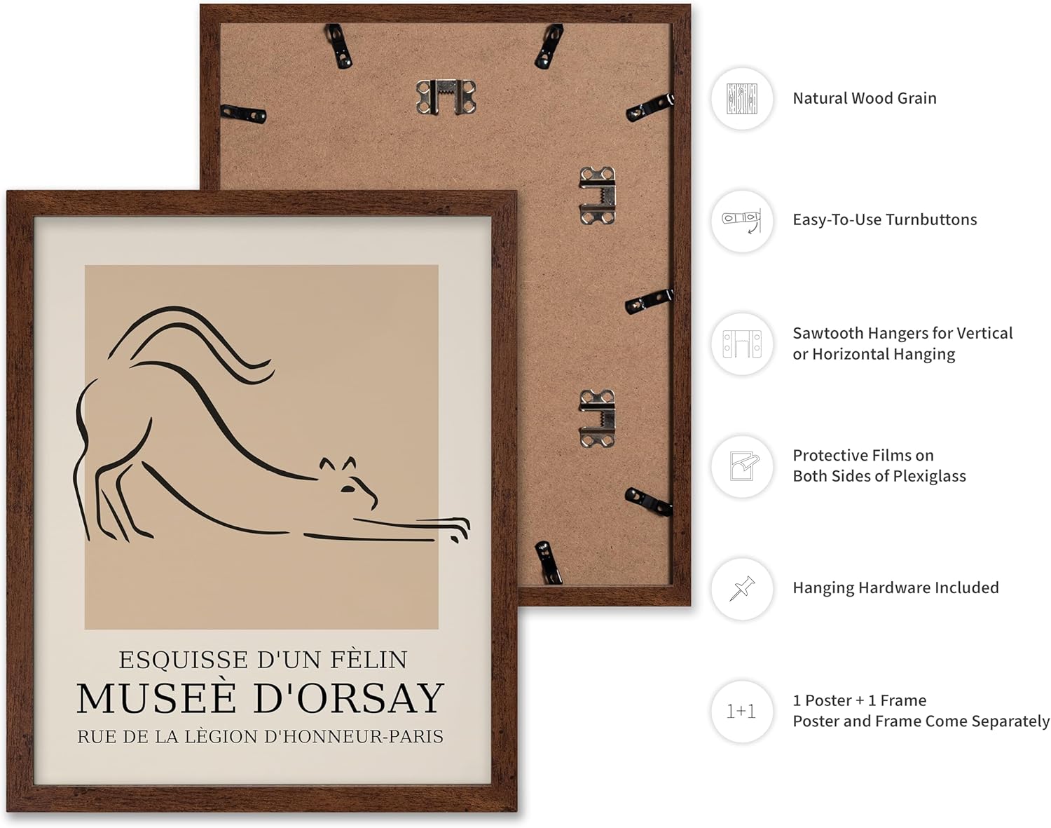 Poster Master Vintage Poster - Retro Minimalist Print - Gift for Artist, Housewarming - Cat, Line Drawing, Sketch, Abstract - Wall Decor for Living Room, Bedroom, 8x10 Brown Framed