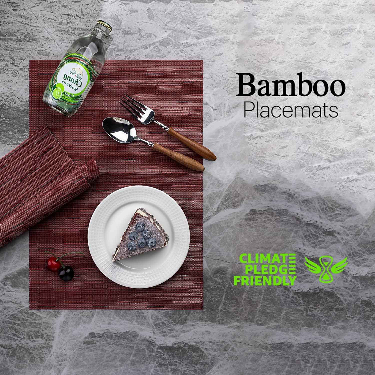 LEXMORE Placemats Set of 12 Vinyl/Plastic Woven Place Mats for Kitchen Table Indoor/Outdoor Washable Placemat Wipeable Dining Table Mats(Burgundy)