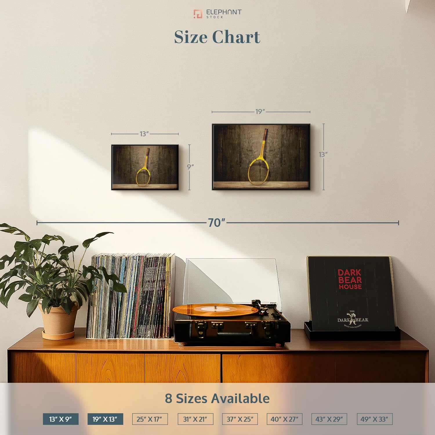 - Durable Canvas Features - Our long-lasting racket sports 1-Piece canvas is made from a non-fading UV and Humidity-resistant 330 GSM Polyester Canvas. This Vintage Tennis Racket canvas can be used as a modern living room wall art.