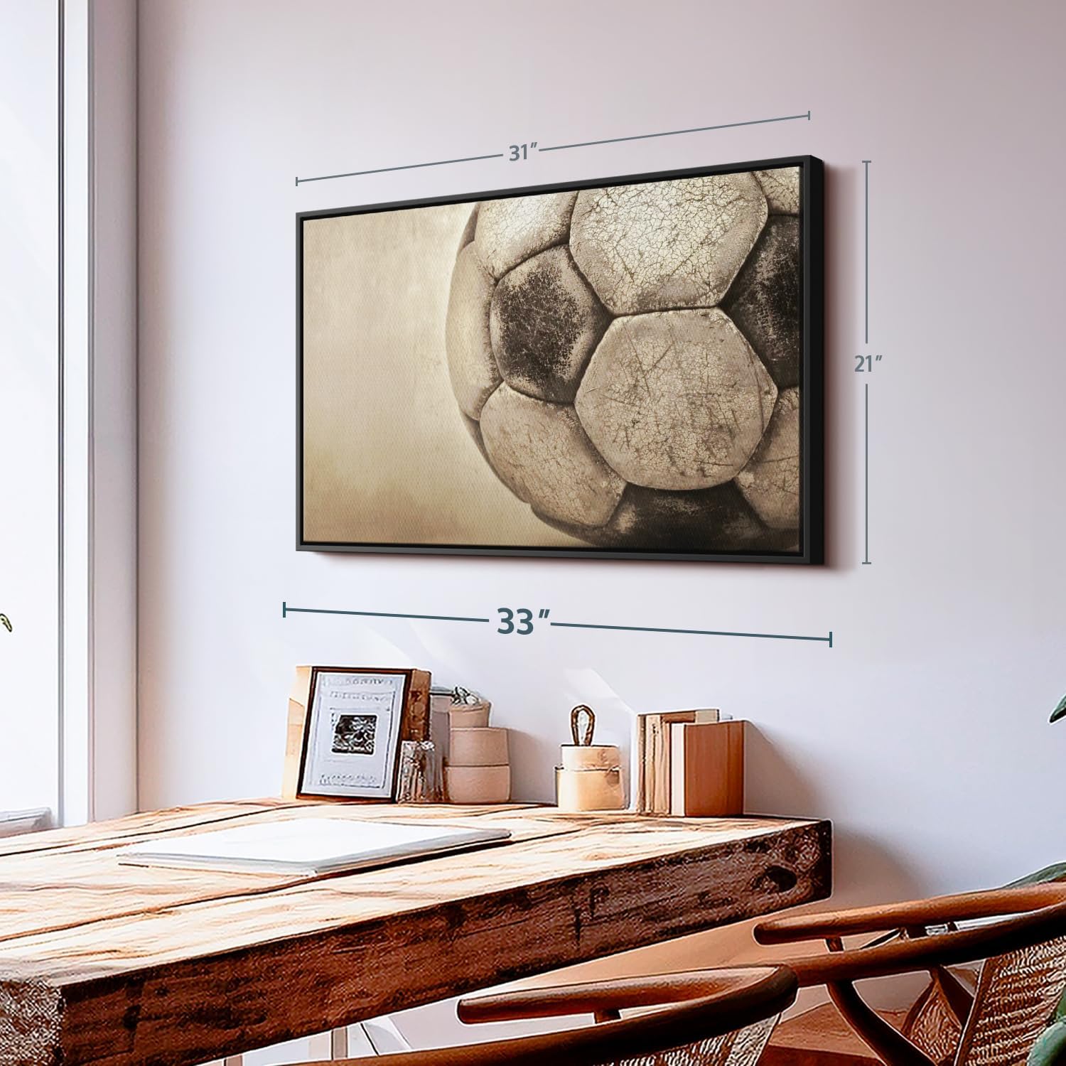 - Durable Canvas Features - Our long-lasting team sports 1-Piece canvas is made from a non-fading UV and Humidity-resistant 330 GSM Polyester Canvas. This Worn Soccer Ball canvas can be used as a modern living room wall art.