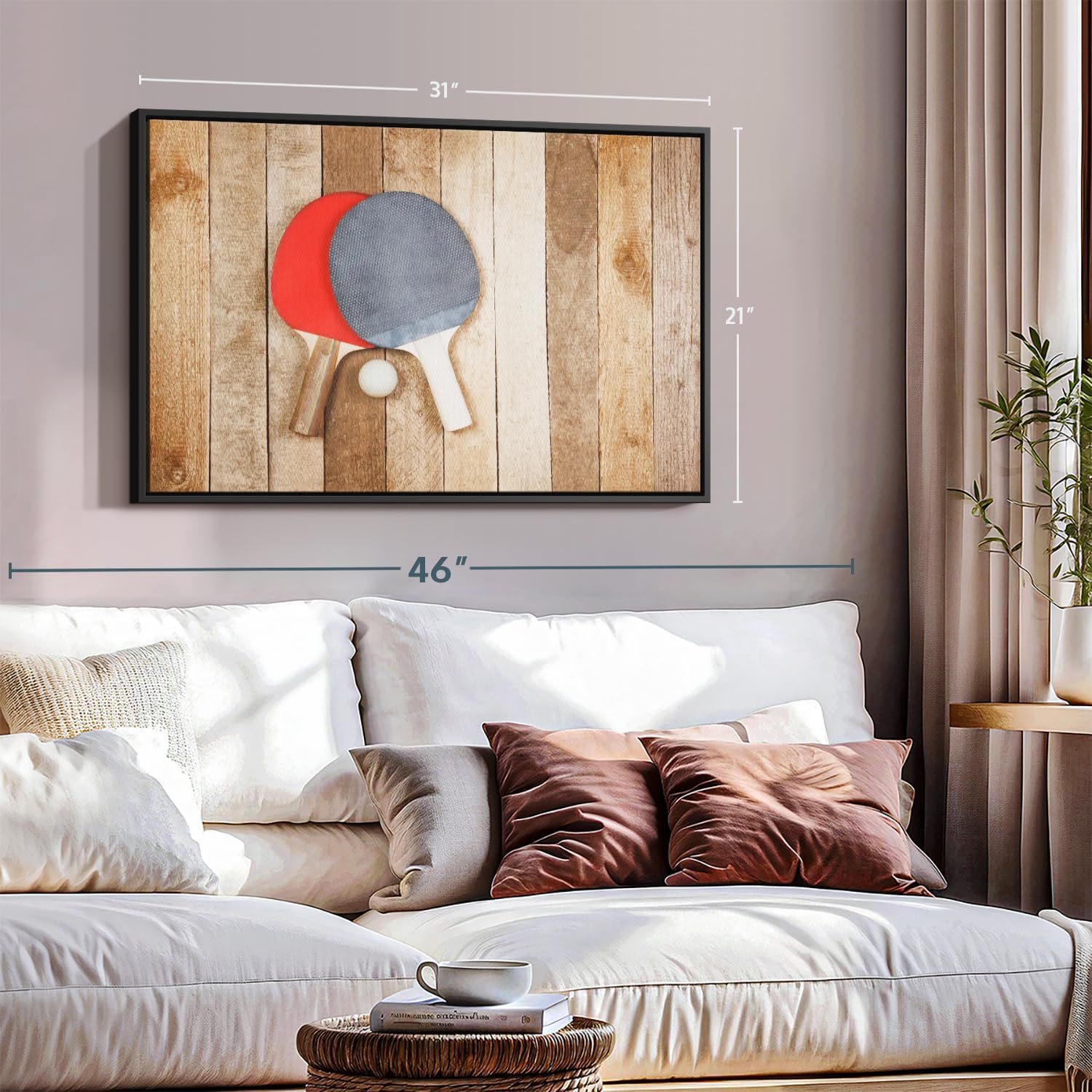 ElephantStock Ping Pong Wall Art - Horizontal Framed Canvas - 1-Piece Living Room Wall Decor - Photography Canvas Print - Brown and Red Decor for Wall - 31" X 21"