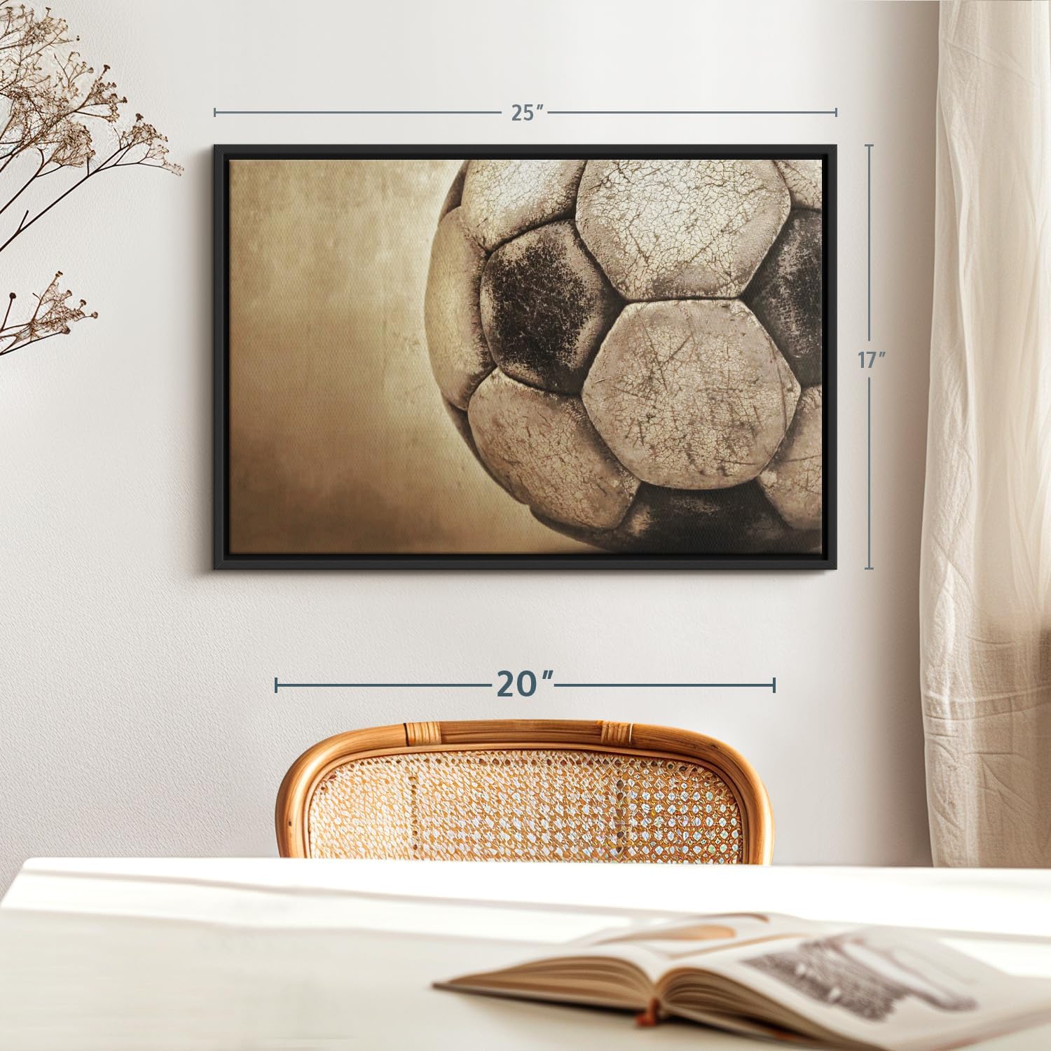Elephant Stock Worn Soccer Ball Wall Art - Horizontal Framed Canvas - 1-Piece Living Room Wall Decor - Photography sports Canvas Print - Brown and Gray Decor for Wall - 25" X 17"