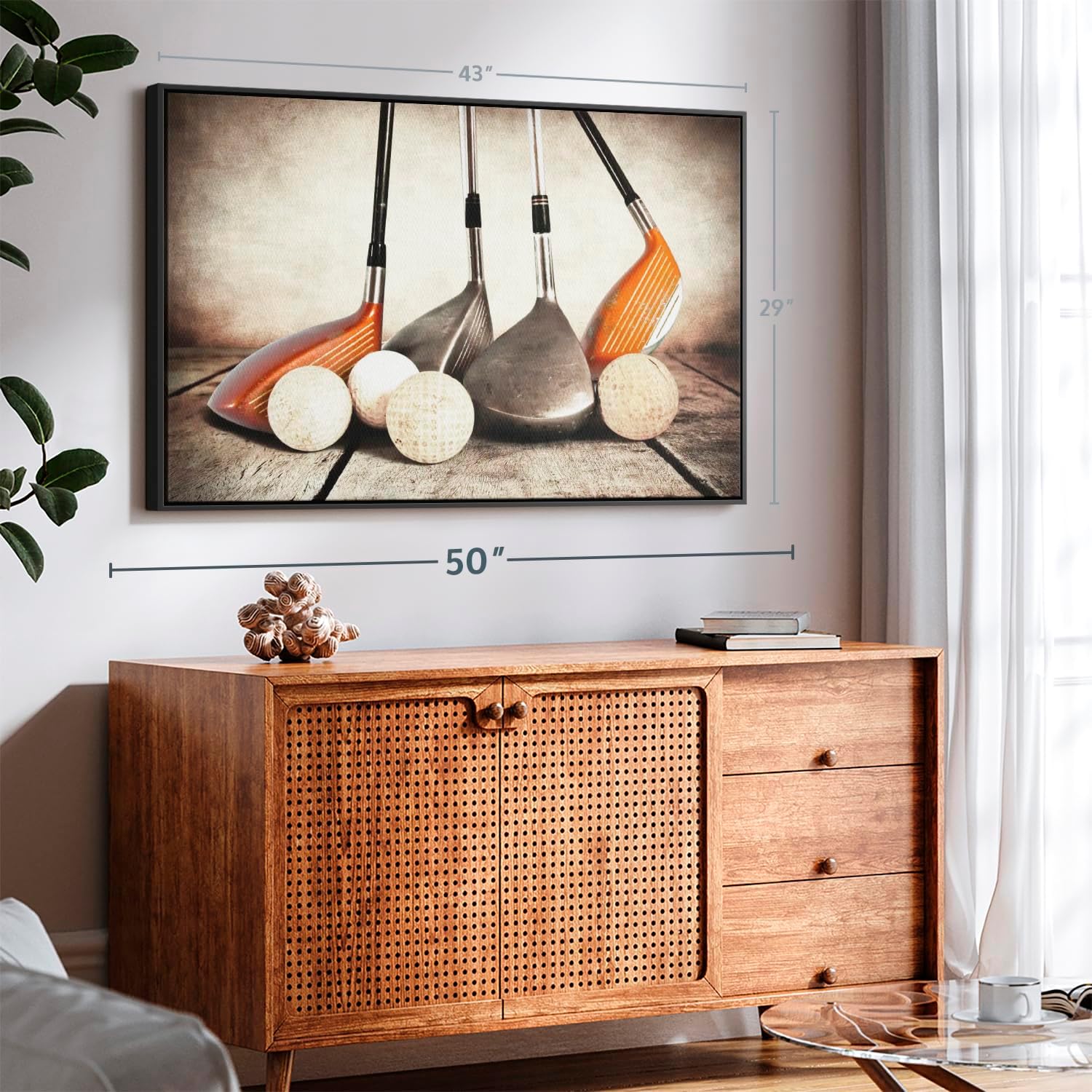 ElephantStock Golf Sets Wall Art - Horizontal Framed Canvas - 1-Piece Mancave Wall Decor - Photography Sports Canvas Print - Yellow and Brown Decor for Wall - 43" X 29"