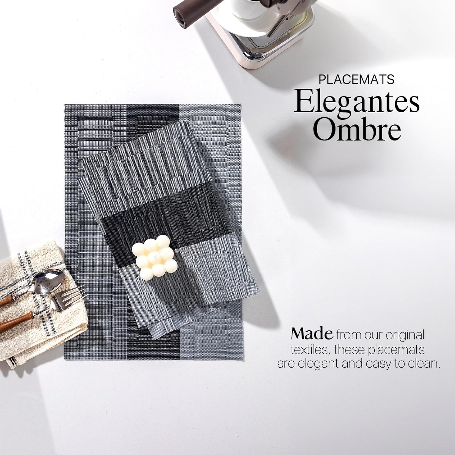 LEXMORE Placemats Set of 4 Vinyl/Plastic Woven Place Mats for Kitchen Table Indoor/Outdoor Washable Placemat Wipeable Dining Table Mats(E-Silver Gray Black)