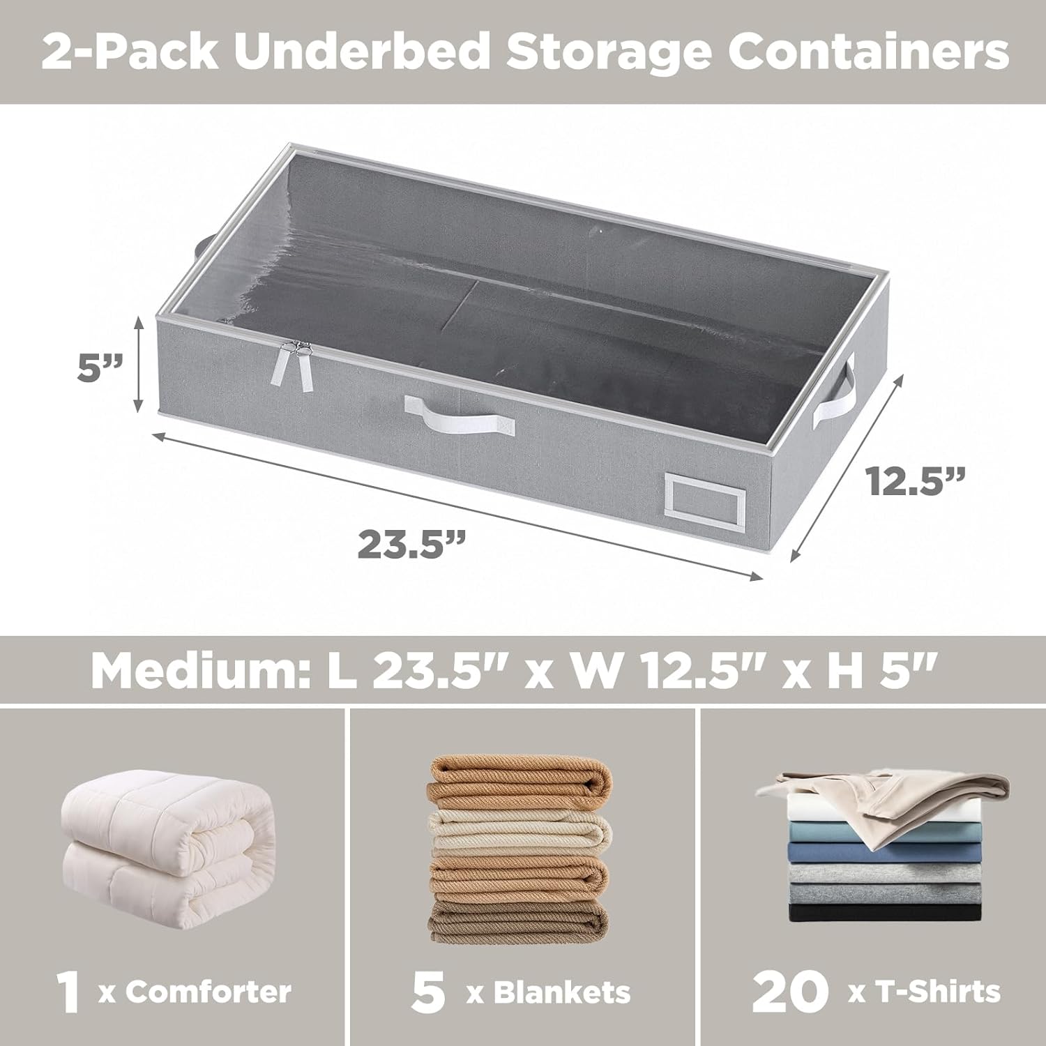 - 【Linen Fabric & Spacious Design】: Crafted from high-quality linen, our under bed clothes storage measures 23.5"L x 12.5"W x 5"H. This spacious under bed storage solution is perfect for organizing your blankets, shoes, sheets, toys, pillows, coats, and other essentials, keeping them neatly tucked away under your bed. The under bed design makes it easy to store your items while keeping them out of sight.