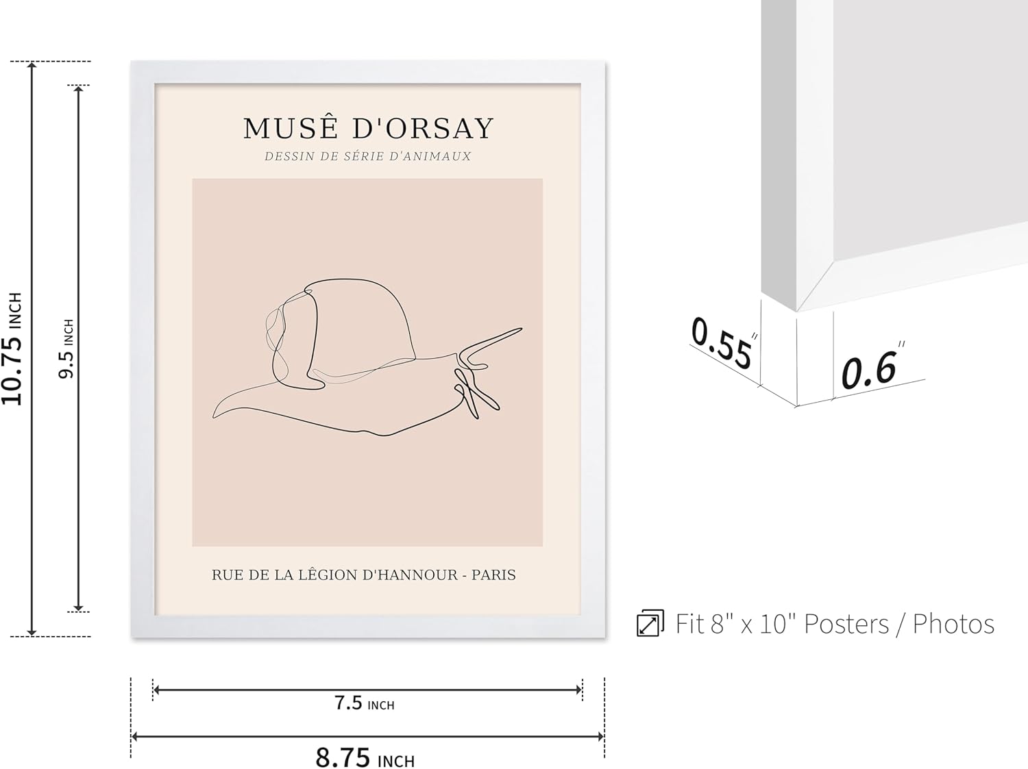 Poster Master Vintage Poster - Retro One Line Snail Drawing Print - Snail Line Art - Minimal Gift for Men, Women, Animal Lover - Abstract Wall Decor for Home, Office, 8x10 White Framed