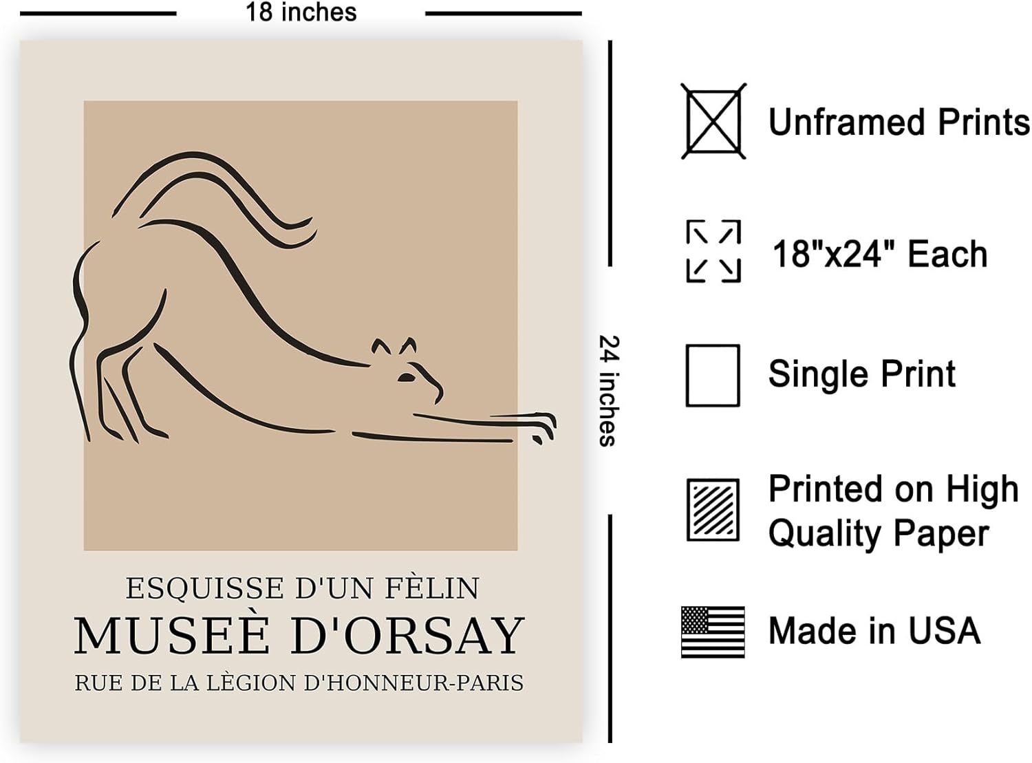 Poster Master Vintage Poster - Retro Minimalist Print - Gift for Artist, Housewarming - Cat, Line Drawing, Sketch, Abstract - Wall Decor for Living Room, Bedroom, 18x24 Unframed Wall Art