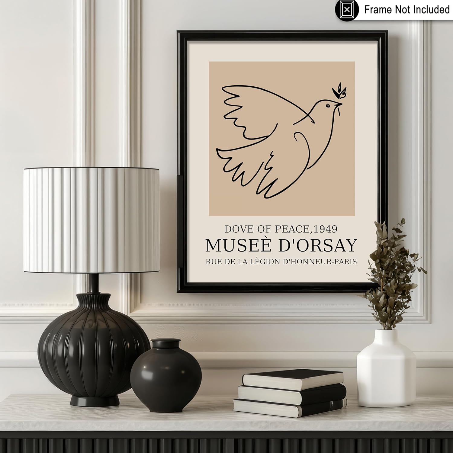 Poster Master Vintage Poster - Retro Minimalist Print - Gift for Artist, Friend - Dove Of Peace, Line Drawing, Sketch, Abstract - Wall Decor for Living Room, Bedroom, 18x24 Unframed Wall Art