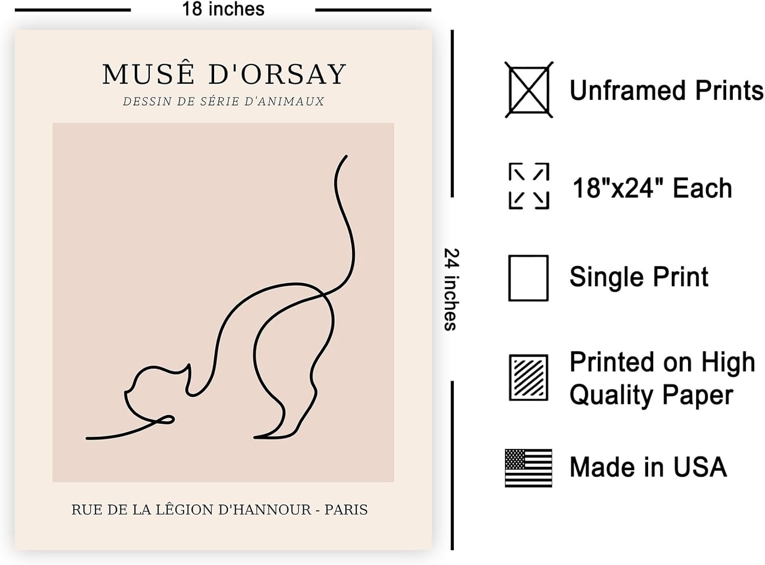 Poster Master Vintage Poster - Retro One Line Cat Drawing Print - Cat Art - Minimal Gift for Men, Women, Animal Lover - Abstract Wall Decor for Home, Office, Bedroom, 18x24 Unframed Wall Art