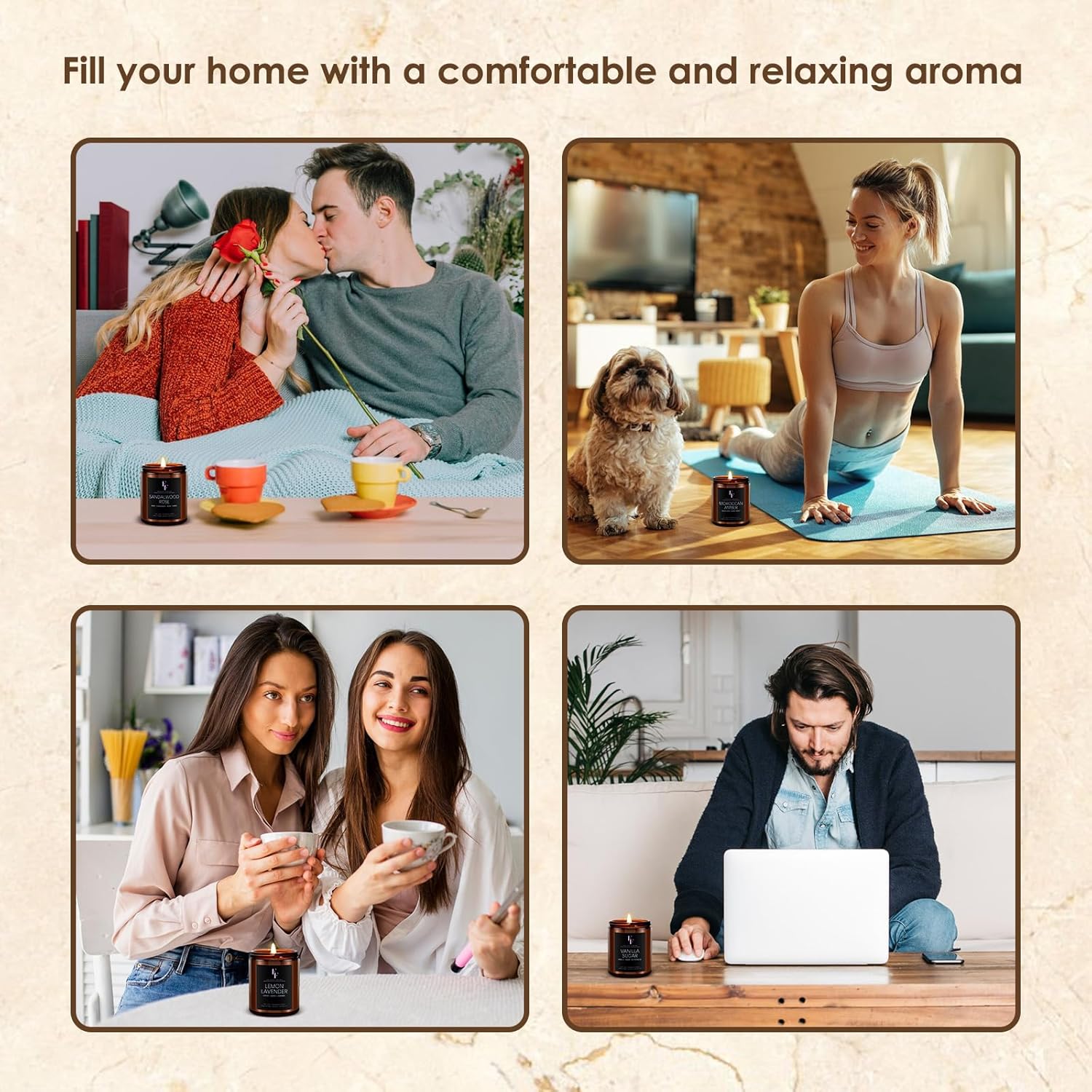 - Candle Set: We have carefully blended 4 different fragrance types, from soft rose flavor to warm amber flavor, from fresh lemo flavor to rich vanilla flavor. Whether you like the natural atmosphere or the personalized flavour, this candle pack can meet your needs. Each candles is a unique fragrance combination that brings you a comprehensive enjoyment of body and mind.