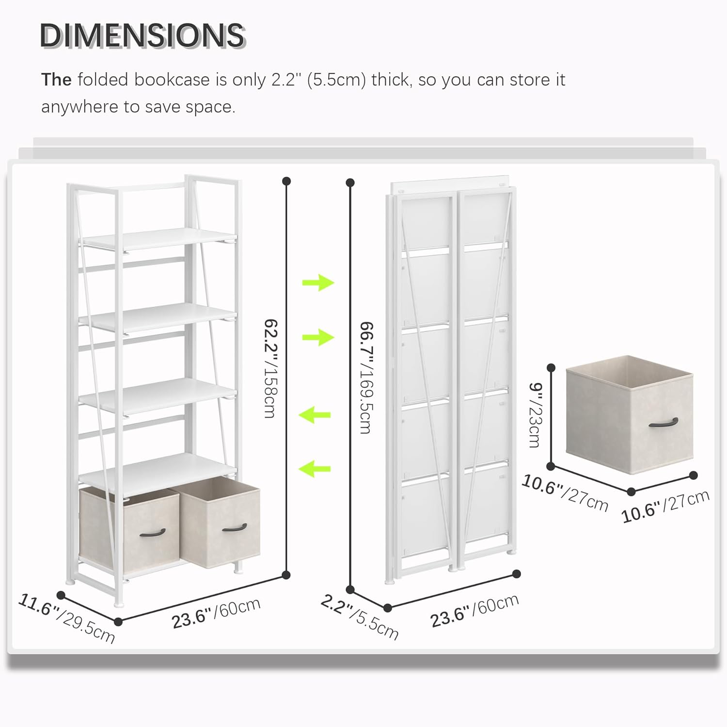 - 【Storage shelf folding sized】23.62x2.2x66.7 inches (60x5.5x169.5cm).
