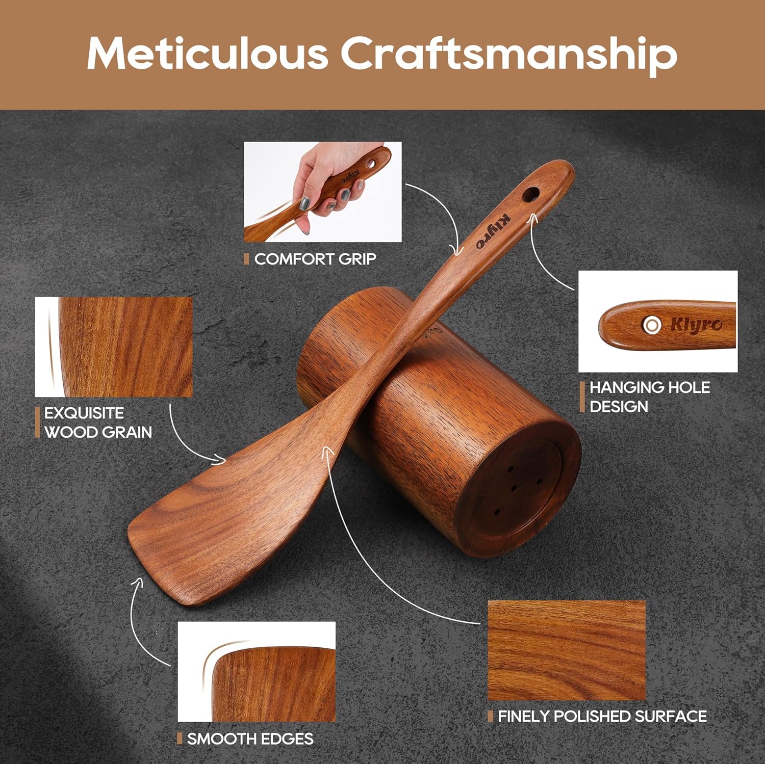 - PREMIUM WOOD: Our kitchen utensils set are made from premium quality solid wood, which is known for its high density, strength and fine grain, ensuring that it won't crack or melt during use, while the natural richness of the wood grain enhances the aesthetics of the kitchen. (Natural wood may have color differences, which is normal.)