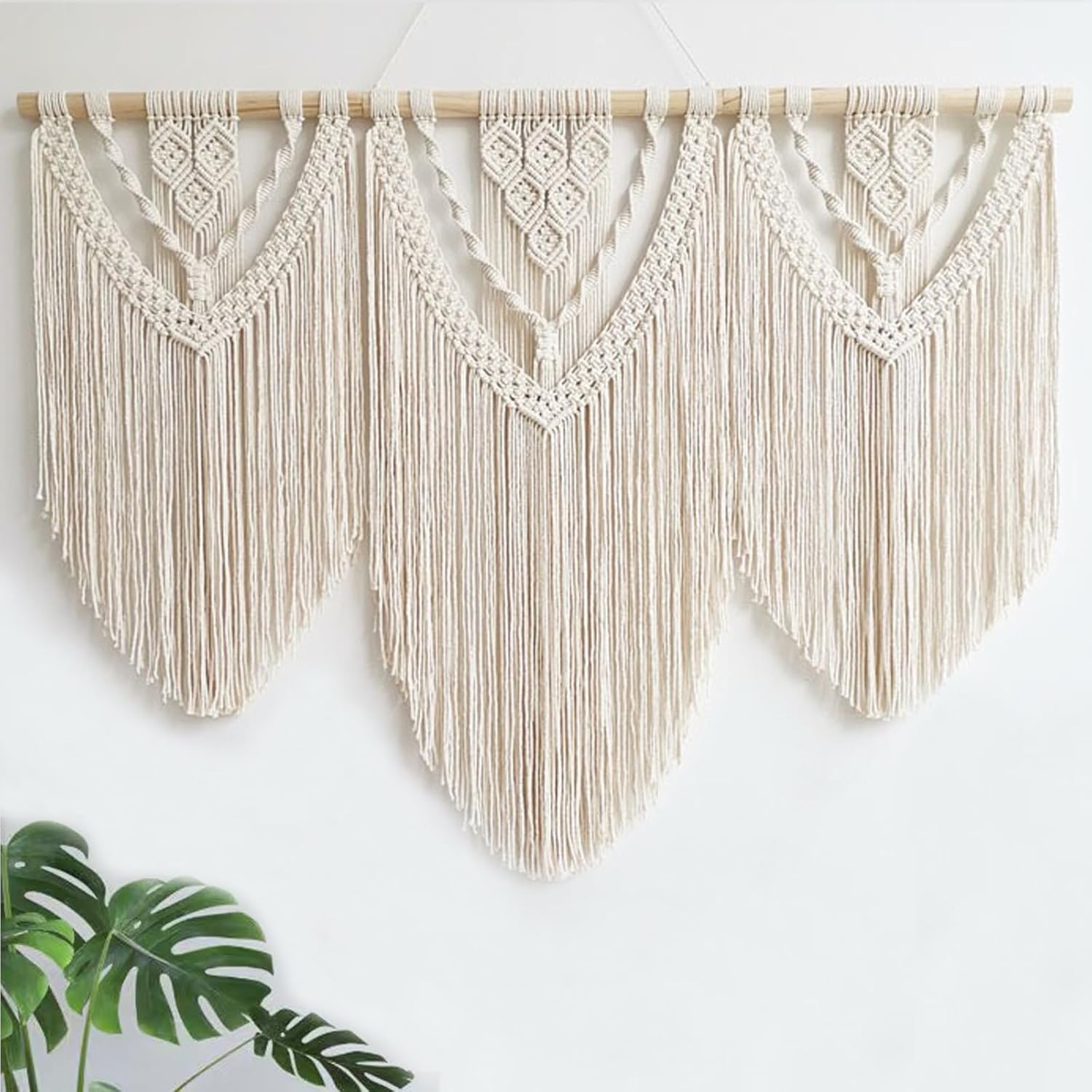 Achart Macrame Wall Hanging Large- Boho Wall Decor- large wall art- Wall Decor Living Room- Macrame Tapestry Boho Decor for Bedroom (Beige-C)