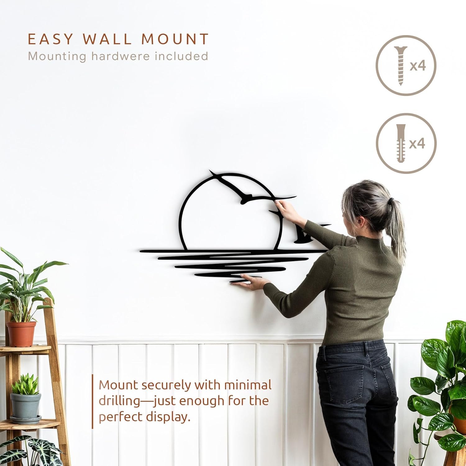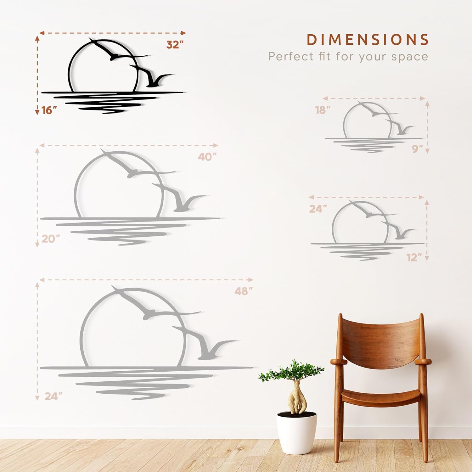 Wita Home Sunset with Seagulls Metal Wall Mounted Art, Handcrafted Metal Home Decor with Static Powder Coating, Eye-Catching Addition to Living Room Decor, Modern Beach Decor for Indoor and Outdoor Spaces, Perfect Housewarming Gift (32 x 16 inches)