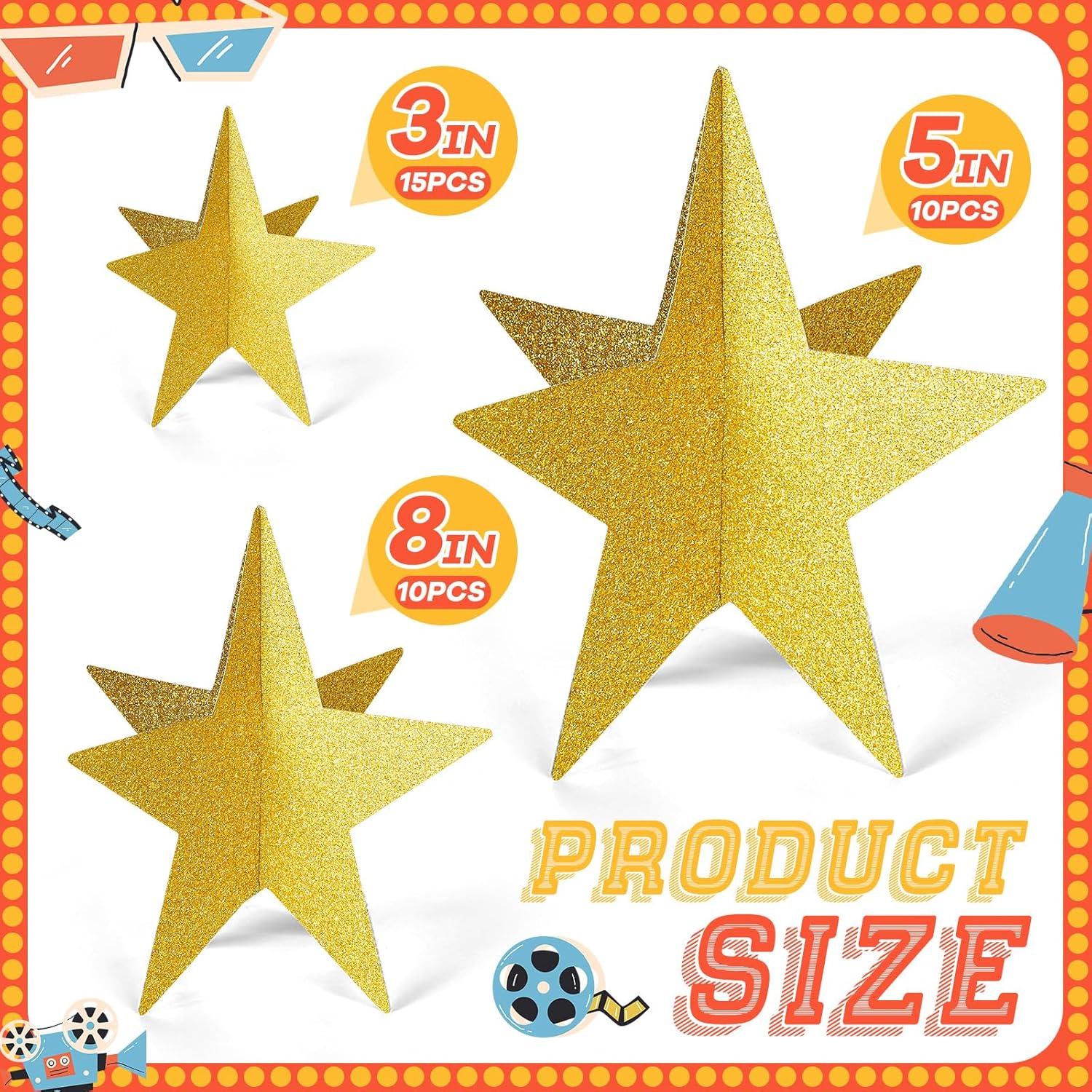 - Use Scenario: these movie-themed star party decorations are ideal for decorating movie nights, birthdays, new school years, first day of year, red carpet parties, and more; Our pack comes with 45 pcs 3D star centerpieces, with this number, you have the freedom to plan and organize a star themed party where every corner will shine bright with our star party decorations