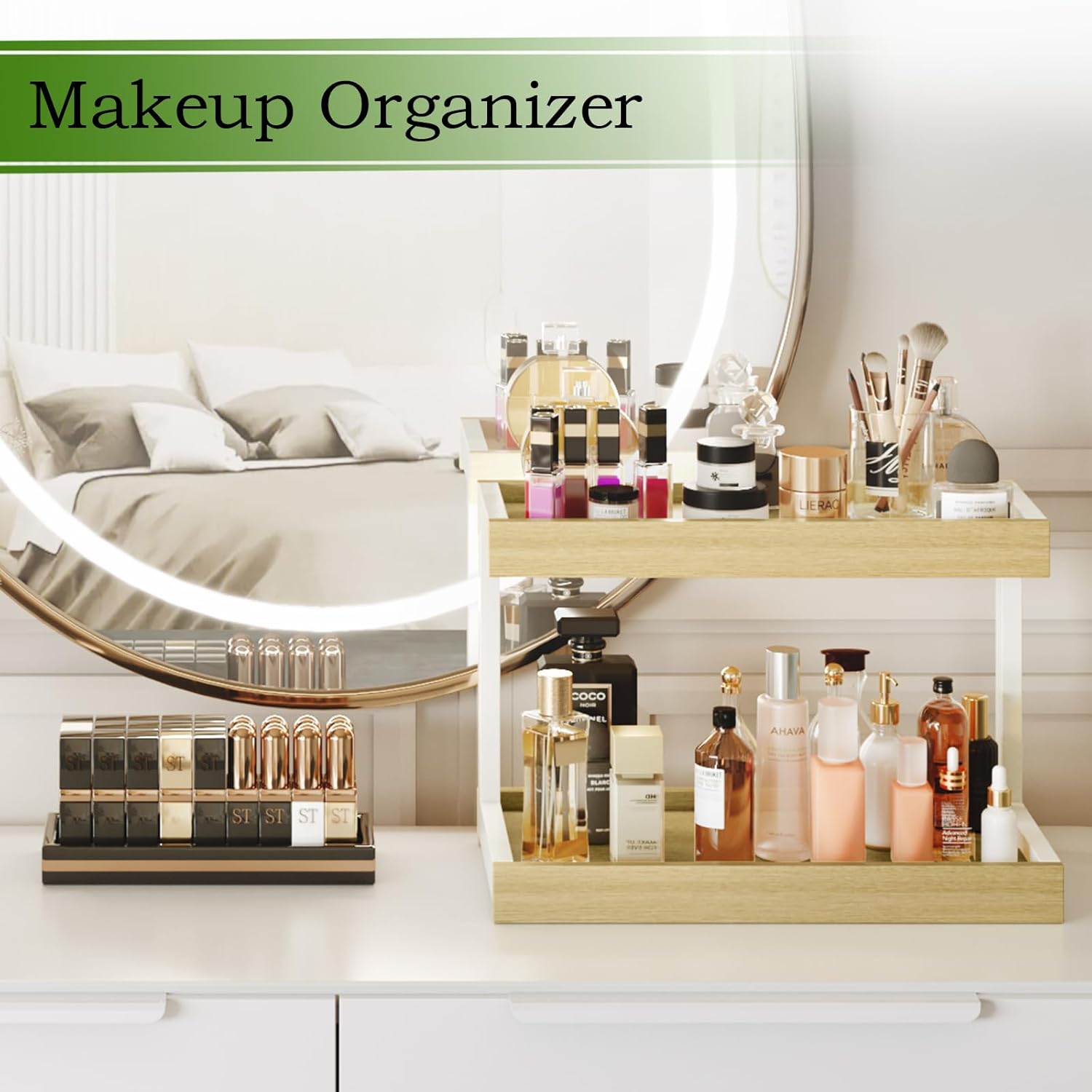 MARTY 2 Tier Spice Rack Organizer for Countertop, 15.8''L Coffee Station/Bathroom Organizer Countertop, Counter Shelf Desktop Storage Organizer for Kitchen, Bedroom, Office