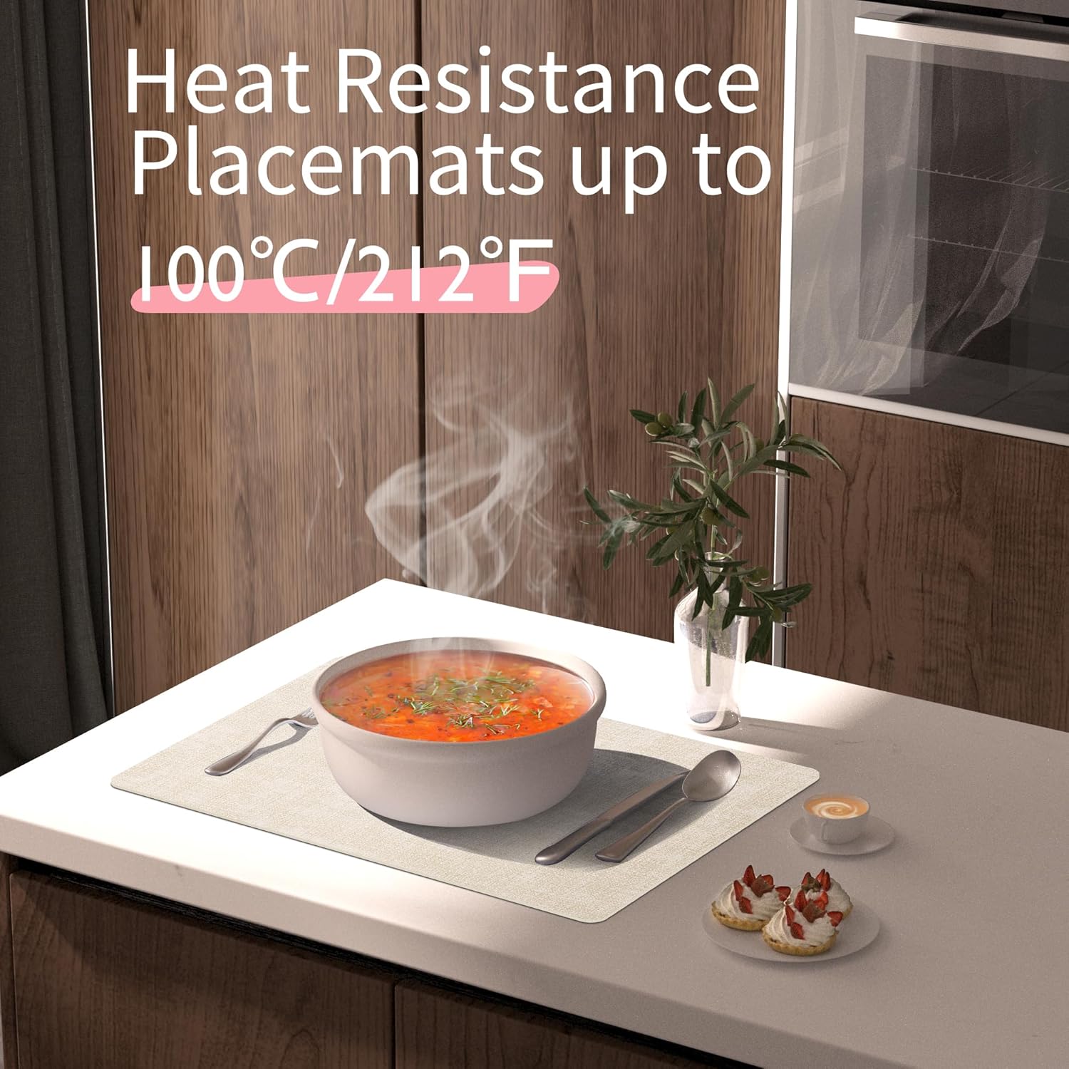 - EASY CARE: Designed for ease of use, these durable table mats withstand any spills and stains, making clean-up a breeze. Just with a simple wipe with a rag or a rinse under the tap, they'll be spotless and ready for your next meal