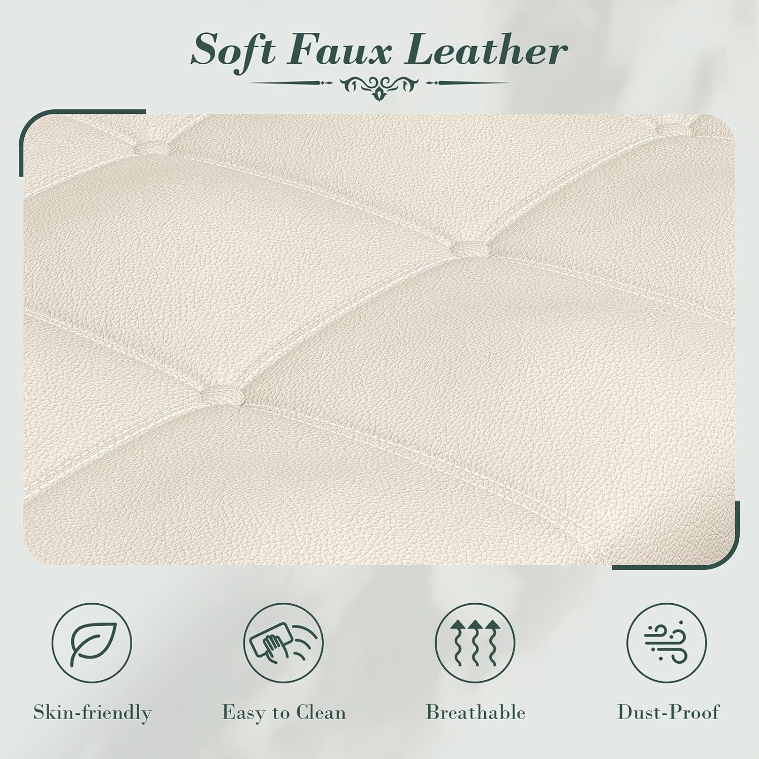 Apicizon 51”Storage Ottoman Bench, Soft Faux Leather Indoor Bench with Rolled Arm and Vintage Rivets, Large Storage Chest for Bedroom, Living Room, Entryway,Beige+Brown Legs