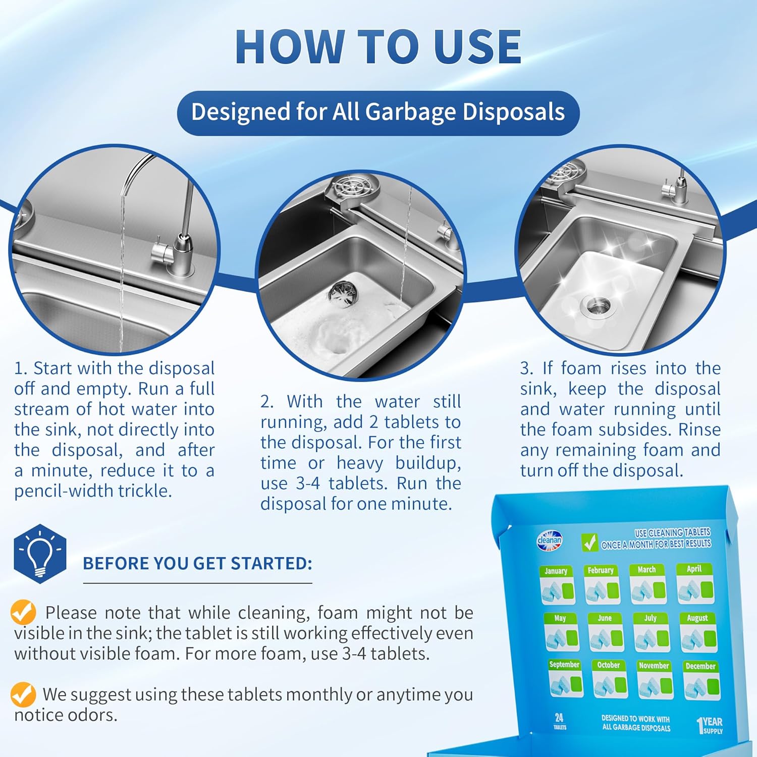 - Easy to Use: Simply run hot water, drop tablets into the disposal, and run the disposal for 1 minute. It's a quick and hassle-free way to keep your disposal clean and odor-free.