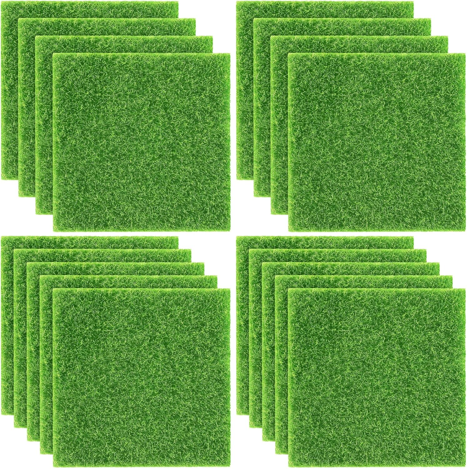 Elcoho 18 Pieces Fake Grass for Crafts Fairy Garden 6 x 6 Inches Artificial Garden Grass for Miniature Ornament Dollhouse DIY Decoration