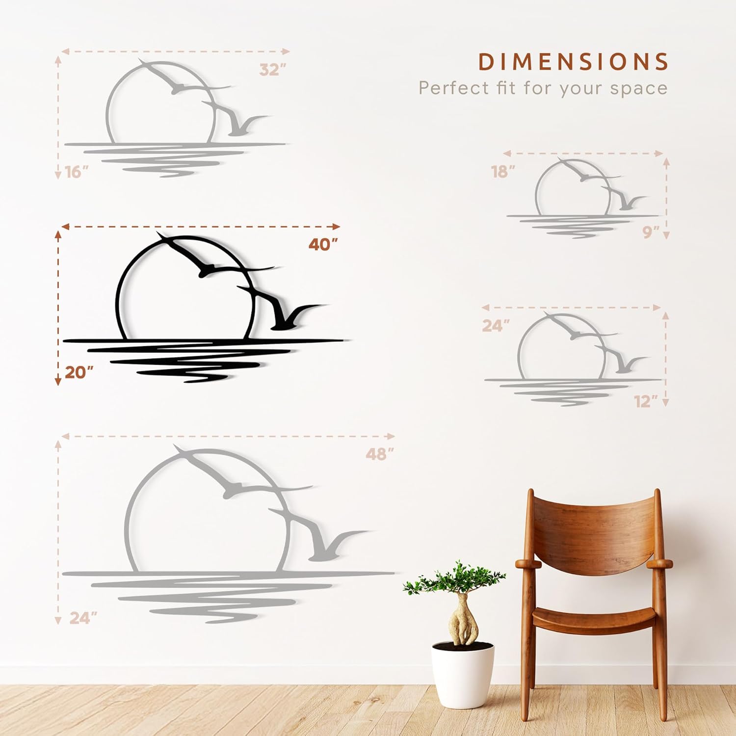Wita Home Sunset with Seagulls Metal Wall Mounted Art, Handcrafted Metal Home Decor with Static Powder Coating, Eye-Catching Addition to Living Room Decor, Modern Beach Decor for Indoor and Outdoor Spaces, Perfect Housewarming Gift (40 x 20 inches)